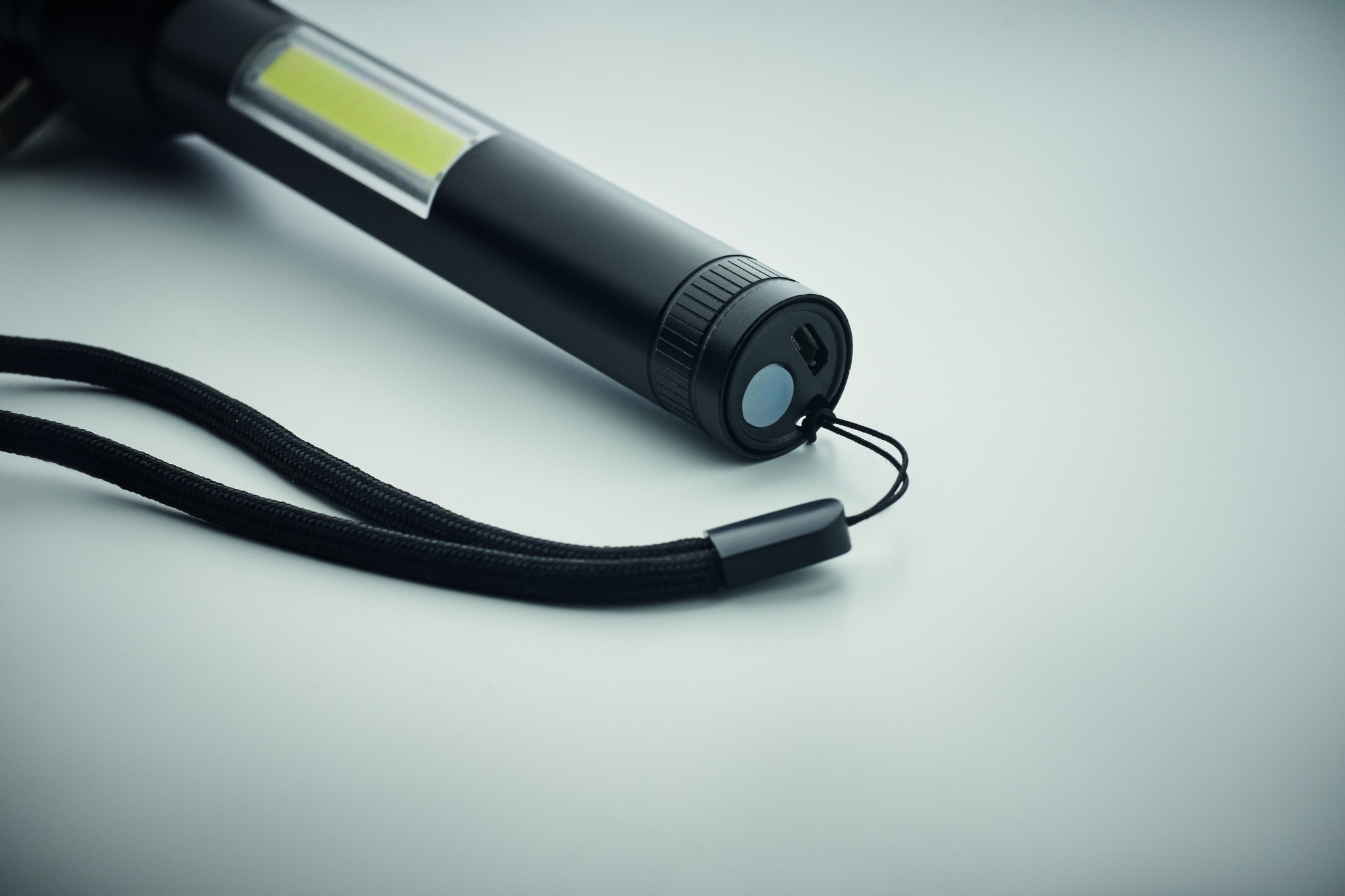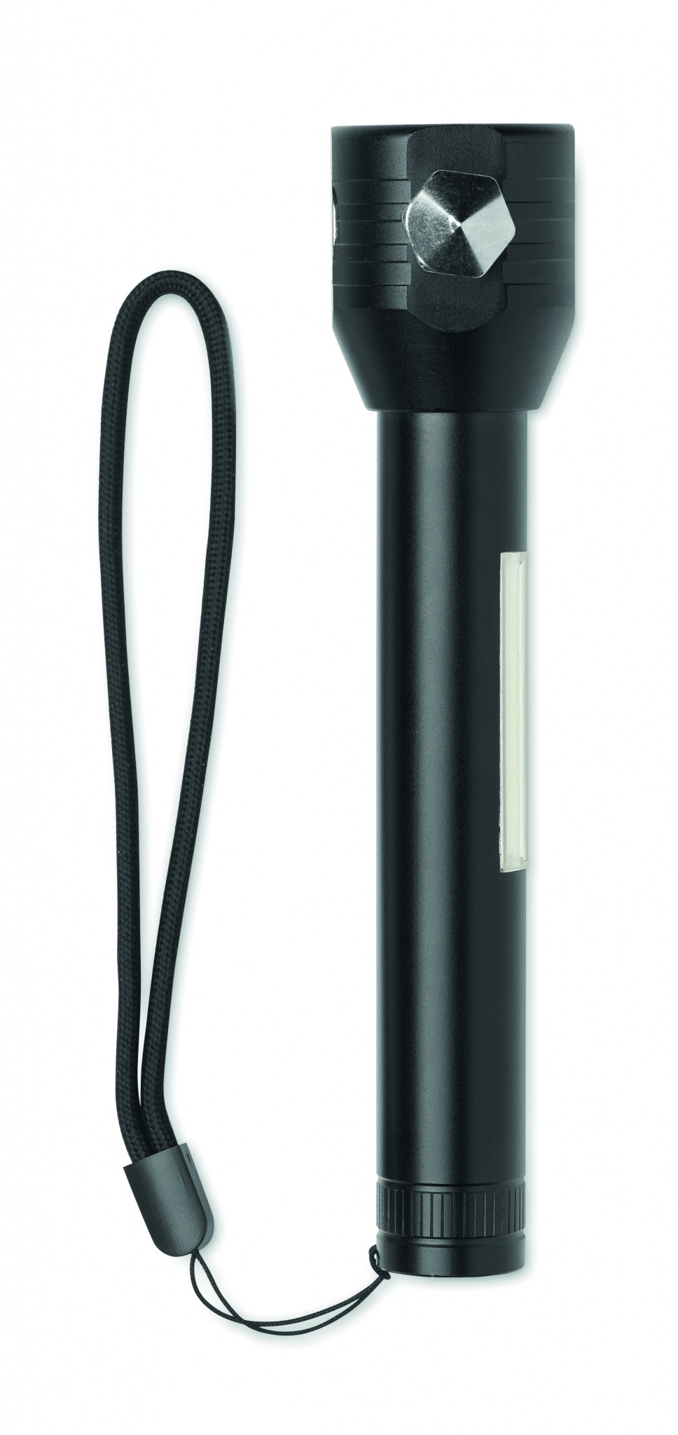 3 in 1 alumiininen taskulamppu hätävasaralla ja turvavyöleikkurilla. Siinä on COB-valo sivulla ja edessä. Sisältää magneetin ja käsihihnan. Mukana sisäänrakennettu ladattava 500 mAh akku.