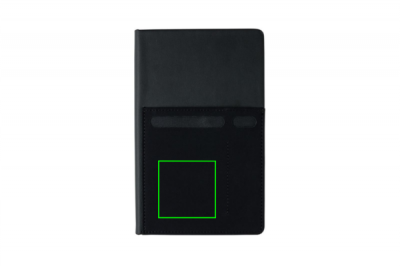 A5 muistikirja, jossa on 160 kermanväristä viivoitettua sivua 80g/m2. Etukannessa on joustava puhelin- tai kynätasku ja suurempi kotelo asiakirjoille. Puhelintasku on 8cm leveä, joka sopii iPhone 7 plus puhelimille.