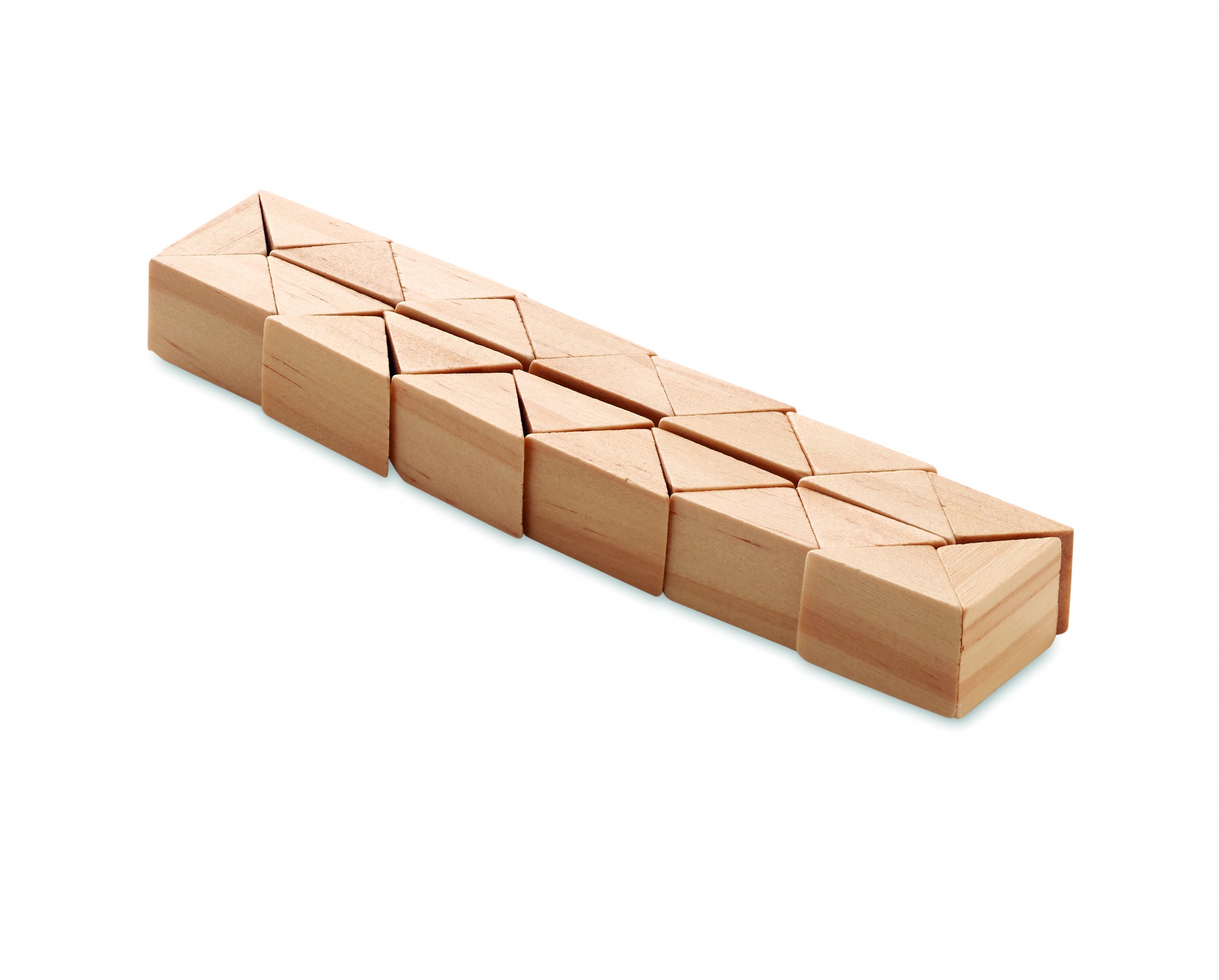 Männystä valmistettu 24 palainen aivopeli, puuvillapussissa.