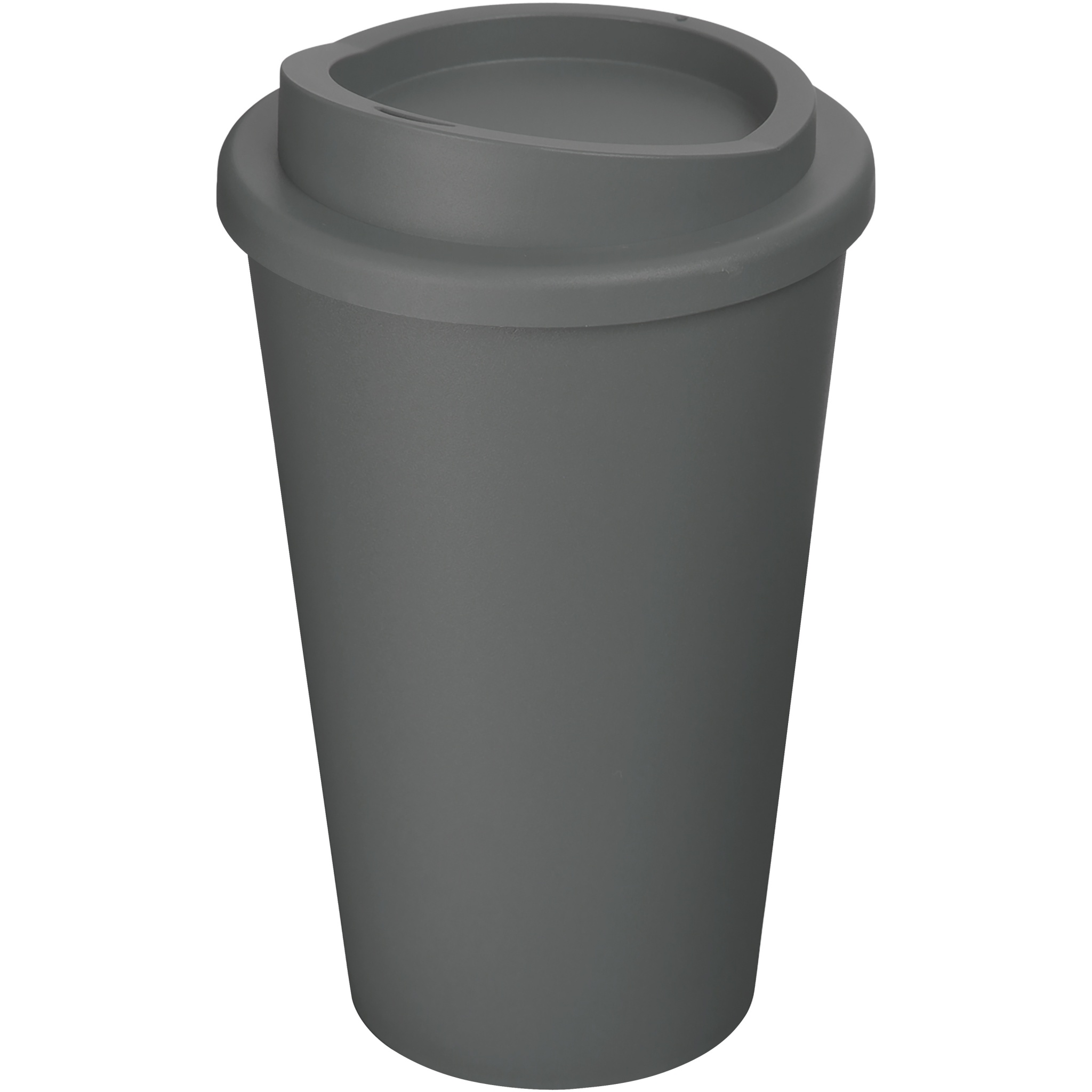 Kaksiseinäinen eristetty muki, jossa on kierrettävä kansi. Muki on valmistettu 100% kierrätetystä muovista ja kansi on valmistettu elintarvikeluokan PP-muovista, kokonaisuus on näin 75% kierrätetty. Mukin sisäpuoli on musta. Mukin sävy saattaa vaihdella johtuen kierrätysmateriaalista. Tilavuus on 350 ml, täysin kierrätettävissä. Valmistettu Isossa-Britanniassa. Pakattu kierrätettyyn PE muovipussiin. BPA-vapaa.