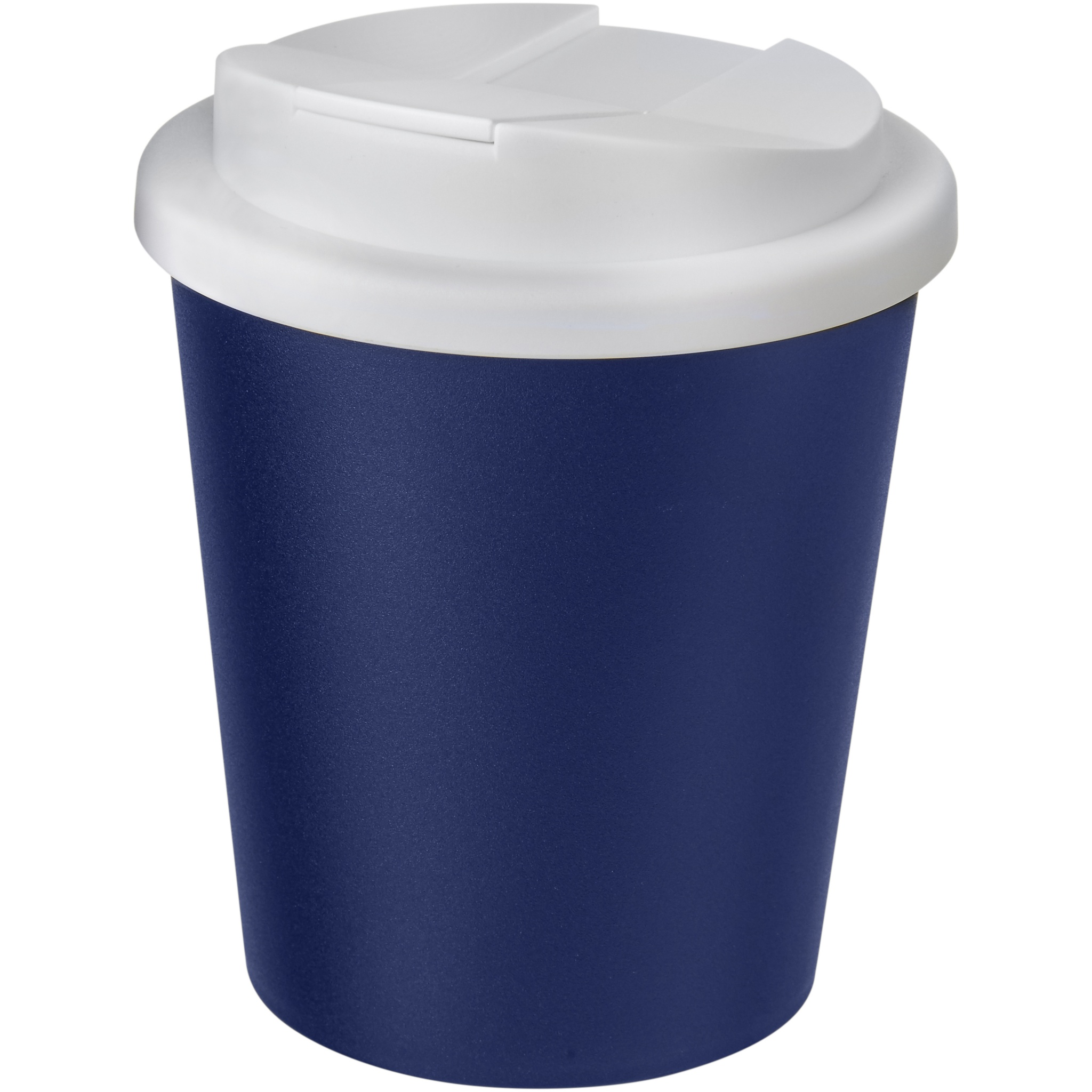 Kompakti kaksiseinäinen eristetty muki, jossa on turvallinen kierrettävä ja läikyttämätön kansi. Ei sisällä silikonia, voidaan kierrättää täysin. Mukia ympäröi värillinen, materiaaliin upotettu kuvio, joten se on pitkäikäinen ja kestävä. EN12875-1-vaatimusten mukainen; konepestävä ja voi käyttää mikroaaltouunissa. Tilavuus on 250 ml. Sekoita värejä ja luo täydellinen muki. Valmistettu Isossa-Britanniassa. Pakattu kierrätettyyn PE muovipussiin. EN12875-1 standardin mukaisesti astianpesukonepestävä sekä mikroaaltouunin kestävä.