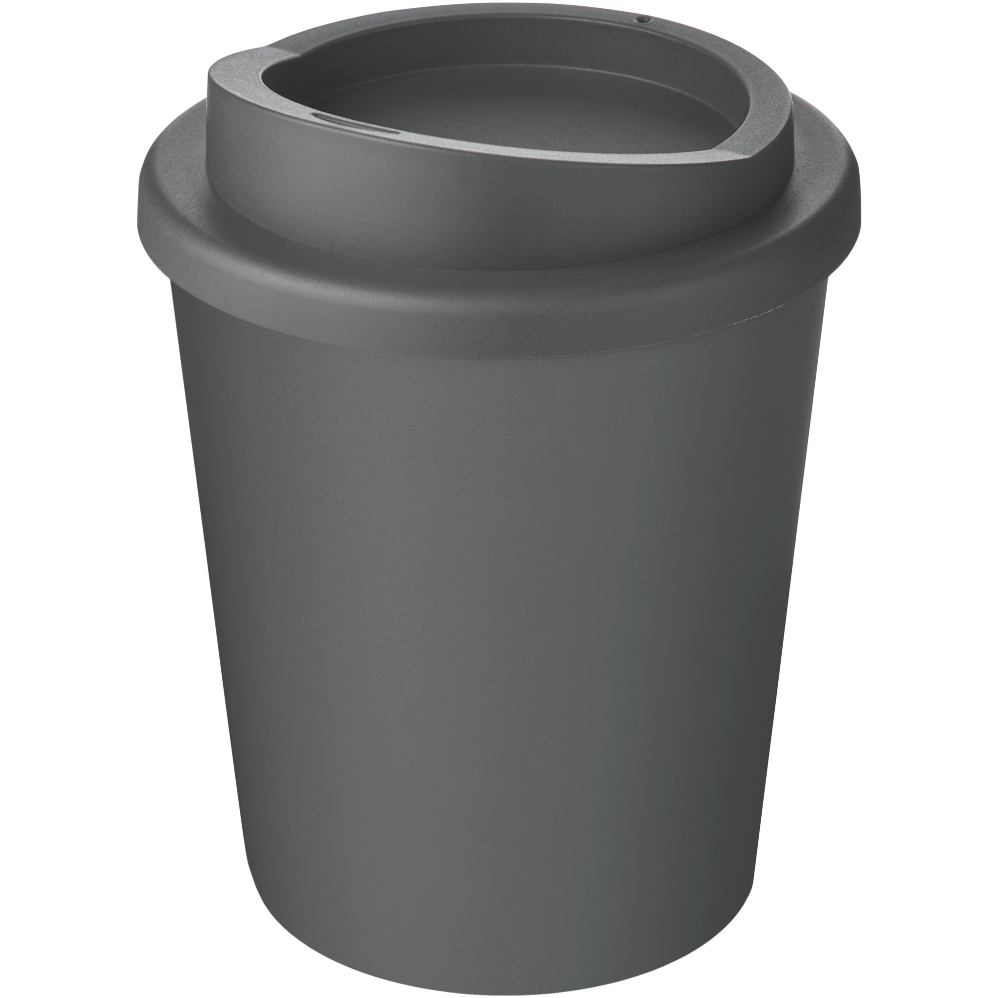 Kompakti kaksiseinäinen eristetty kahvimuki kierrekannella. Sopii useimpien kahvinkoneiden alle. Kahvimuki on valmistettu kokonaan kierrätetystä PP-muovista, ja kansi on valmistettu elintarvikeluokan PP-muovista, kokonaisuutena näin 70% on kierrätettyä. Koska kansi ei ole valmistettu kierrätetystä materiaalista, sen voi tilata monissa eri väreissä. Muki on täysin kierrätettävä. Kierrätysmateriaalin luonteesta johtuen mustan sävy voi hivenen vaihdella. Tilavuus on 250 ml. Valmistettu Isossa-Britanniassa. Pakattu kierrätettyyn PE muovipussiin.