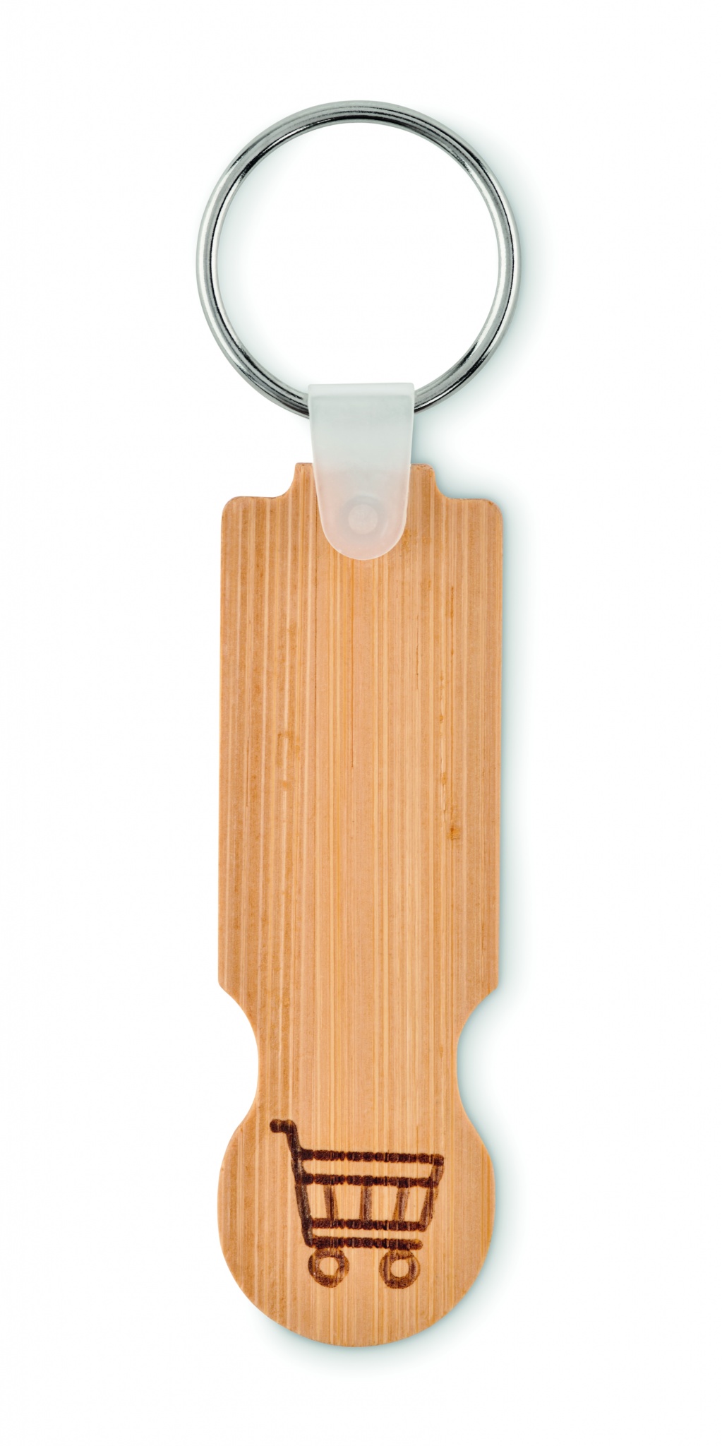 Bambusta valmistettu avaimenperä, jossa on euron kokoinen polettipää.