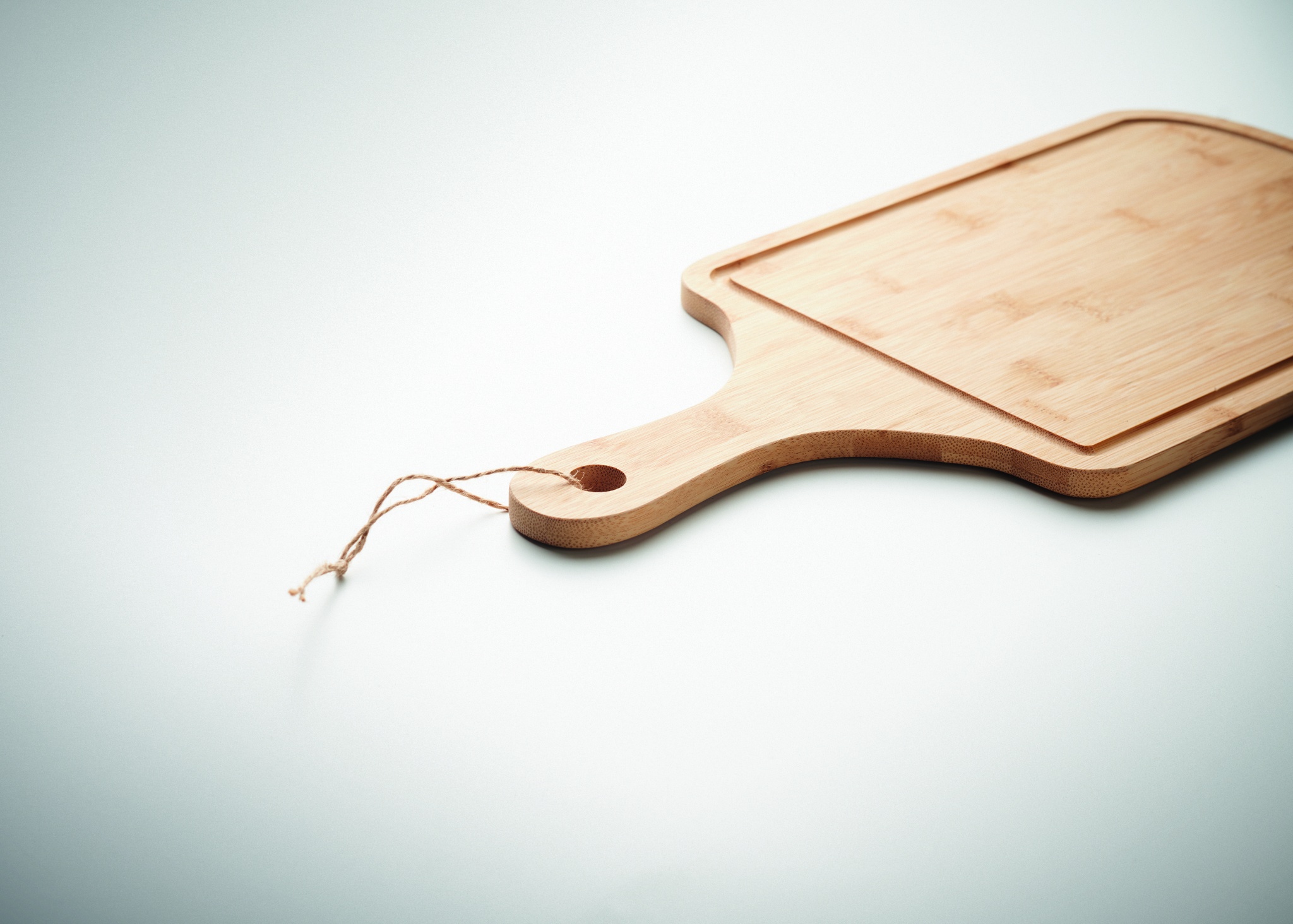 Bambusta valmistettu leikkuulauta juuttinarulla, leikkuulaudan ripustamiseen. Luonnollisen materiaalin (bambu) vuoksi, tuotteiden värissä/ koossa saattaa olla erinäisyyksiä ja tämä voi vaikuttaa painatuksen lopputulokseen.
