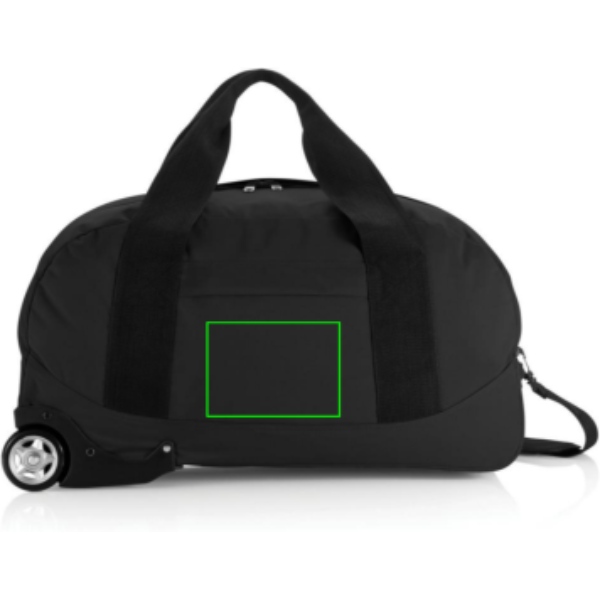 300D tiheäkudoksinen erityisvahva kangas. Ulosvedettävä vetojärjestelmä, hopeanväriset pyörät, säädettävä olkahihna. Yksi etutasku ja vetoketjullinen päätasku.