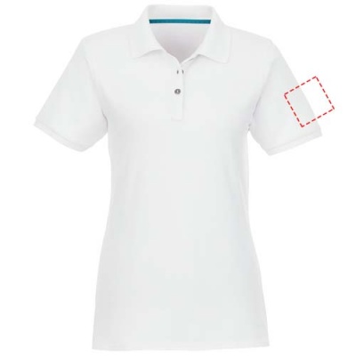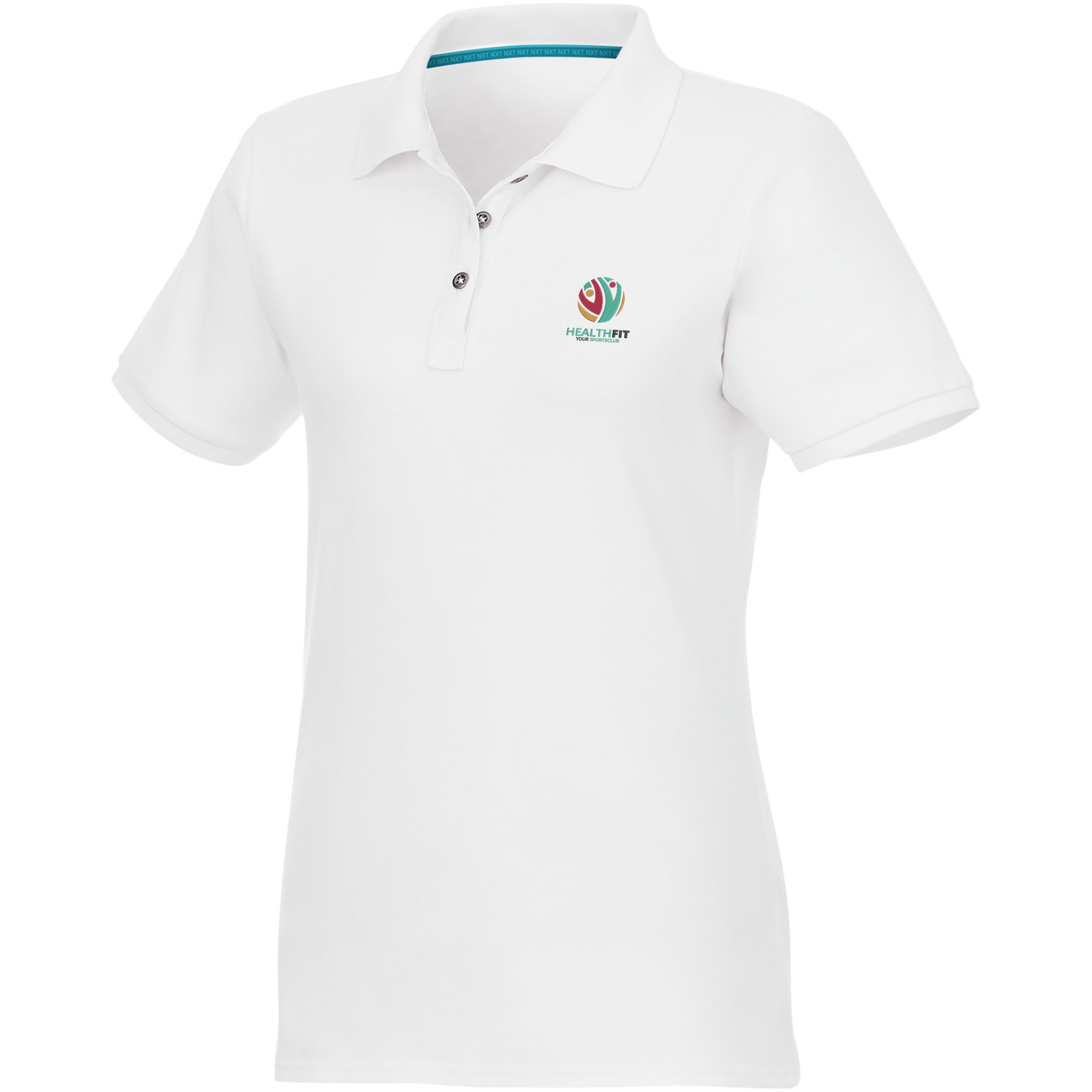 The Beryl short sleeve women's polo is made of 220 g/m² 70% cotton blended with 30% recycled polyester, making it a more sustainable option suitable for a variety of occasions and activities. The flat knit rib cuffs add sophistication and the polo is designed with a fitted shape for a feminine look.