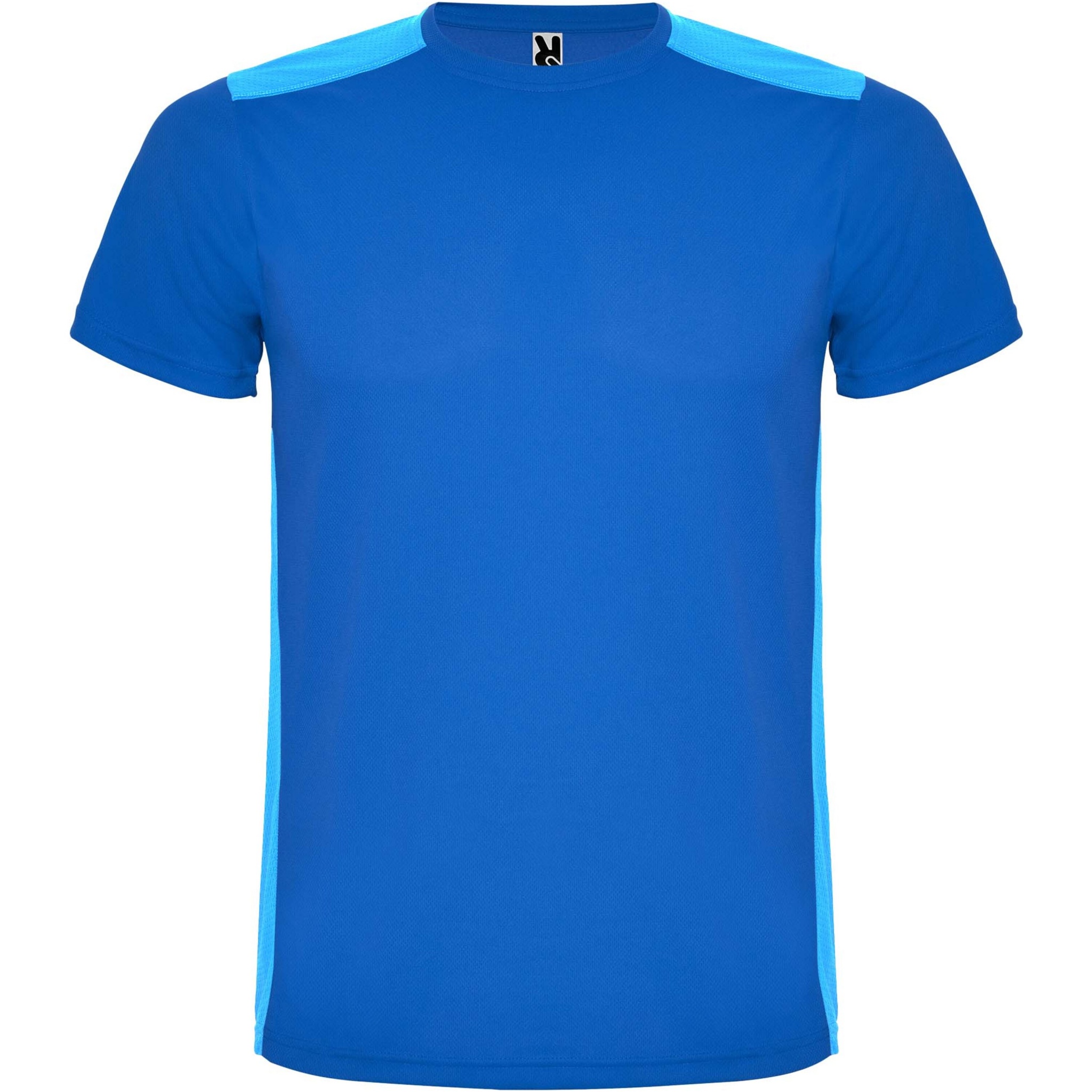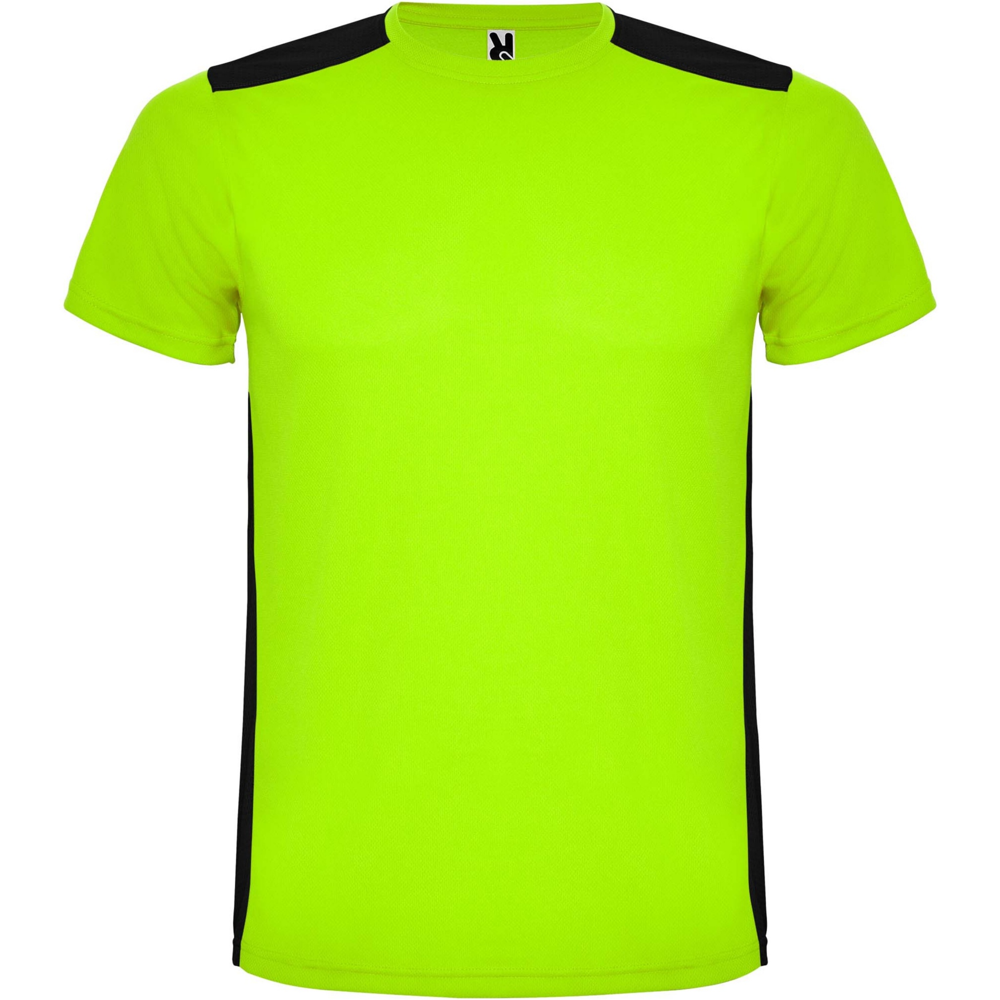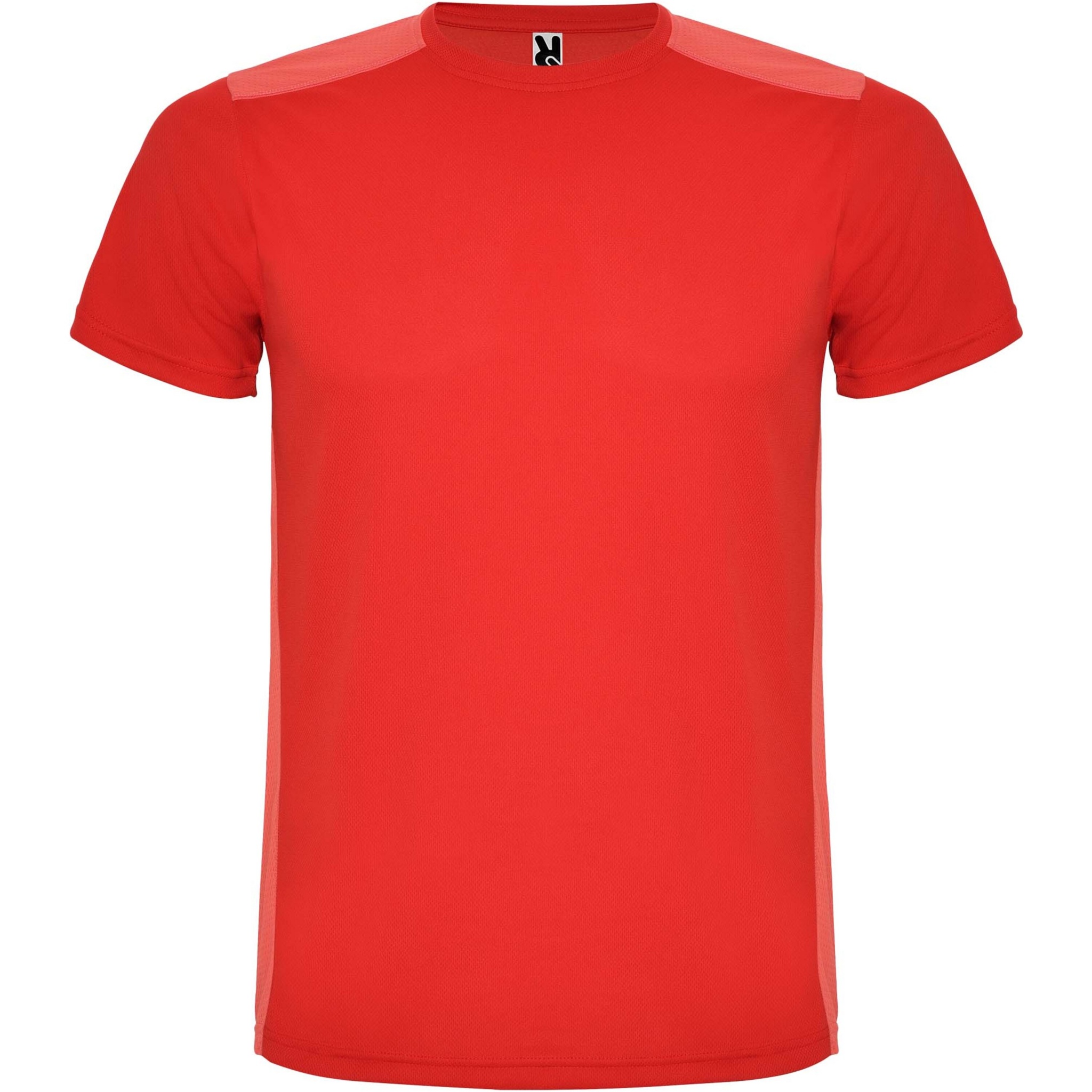 Helposti kuivuva, tekninen ja hengittävä kangas. Pyöreä kaula-aukko. Kahden polyesterikankaan yhdistelmä selässä ja olkapäissä. Bird's eye -kangas edessä ja hengittävä 3D-verkkokangas takana. Kangas, joka on suunniteltu imemään kosteutta. Sivuilla ja olkapäillä koristeellinen siksak-tikki. Selkäosa hieman pidempi. Irrotettava etiketti.