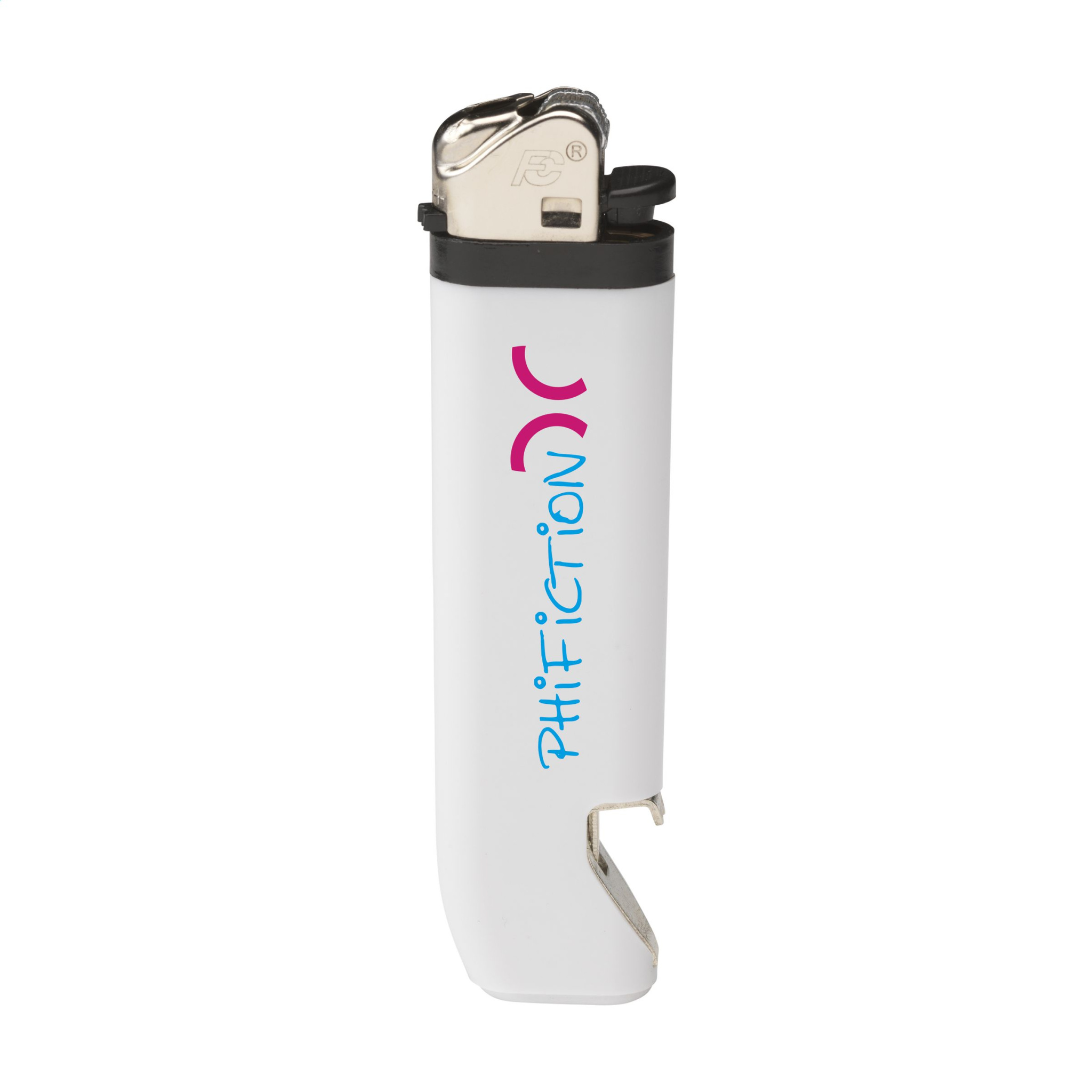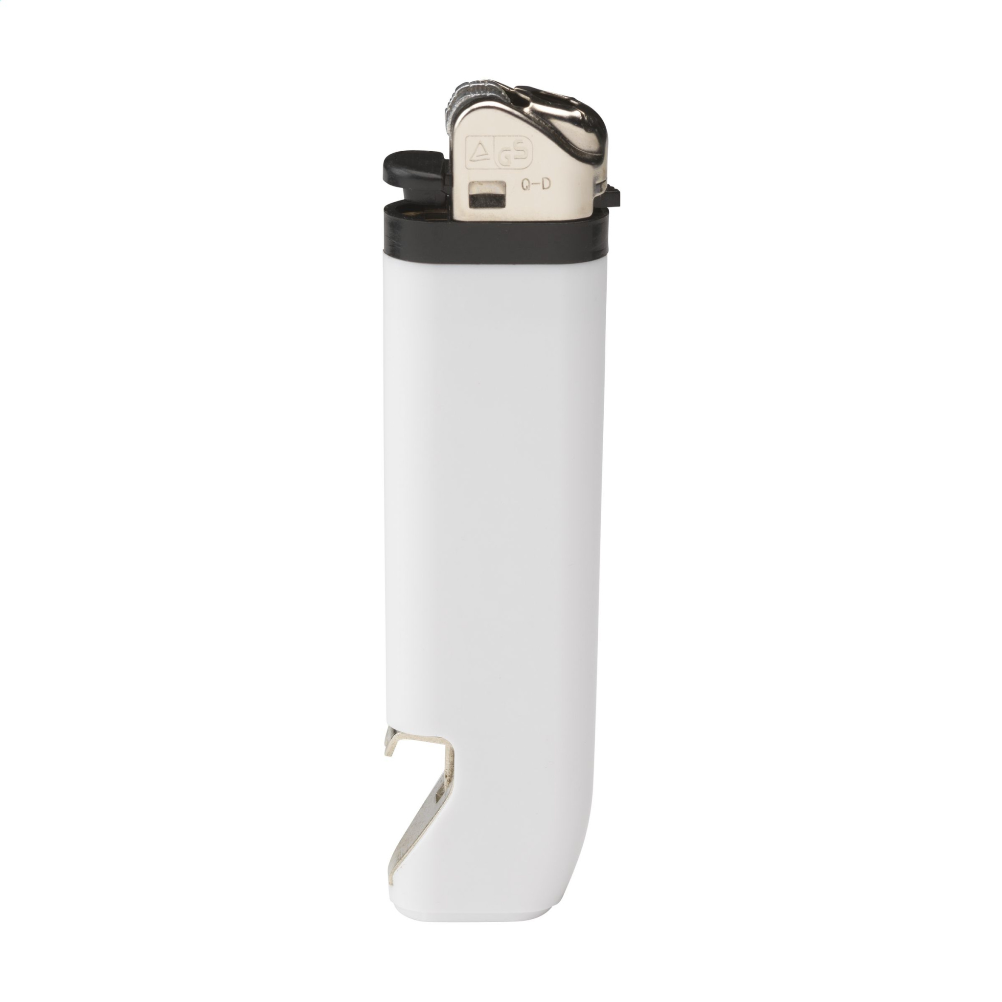 Laadukas Flameclub®-sytytin, jossa kätevä pullonavaaja ja säädettävä liekki. Varustettu lapsilukolla. NEN-sertifioitu: EN13869. TÜV-sertifioitu ja ISO-sertifioitu: ISO9994. Sytyttimet toimitetaan vain painatuksen kanssa.