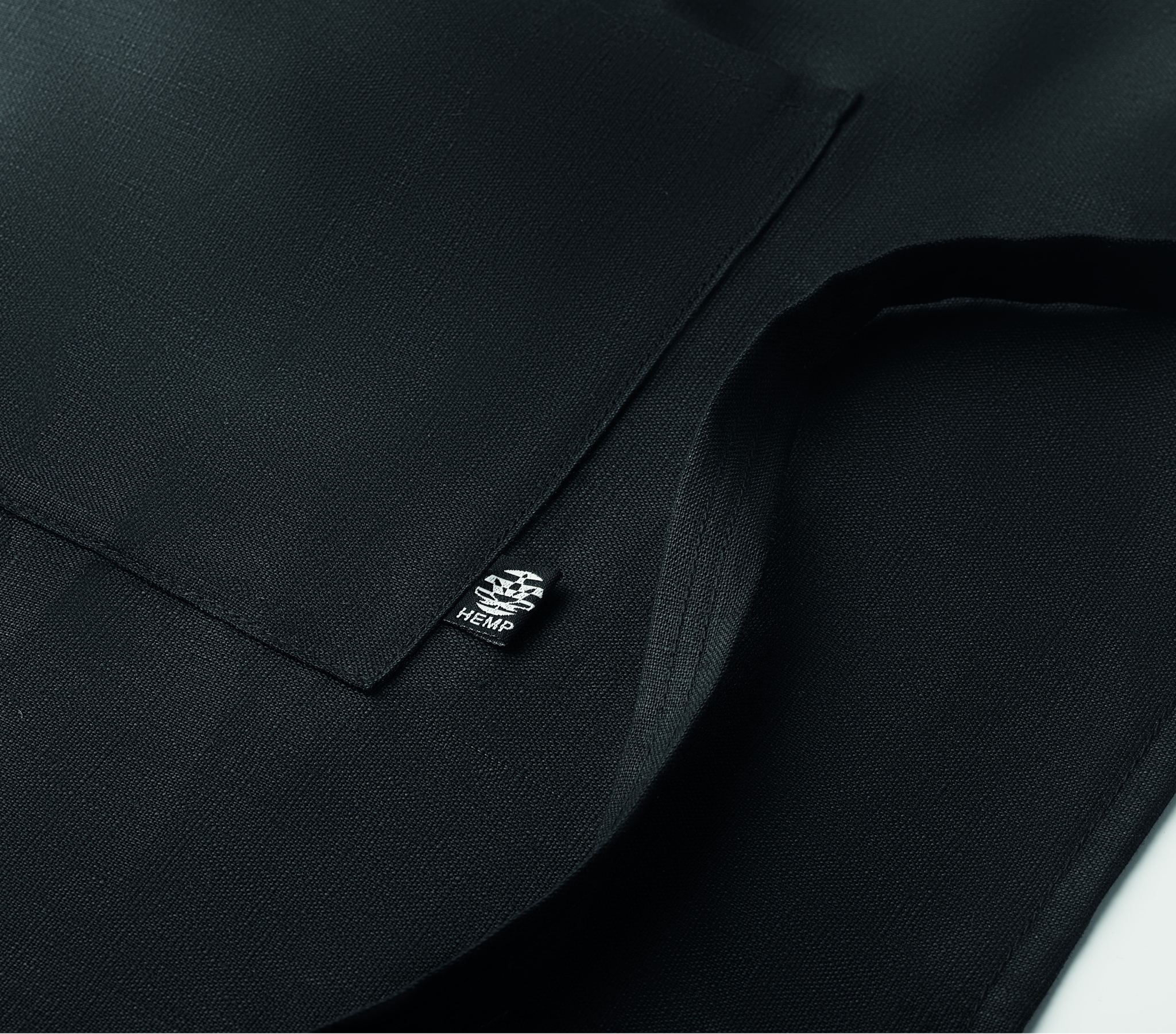 200gr/m² säädettävä 100% hamppukankaasta valmistettu esiliina, kahdella etutaskulla.
