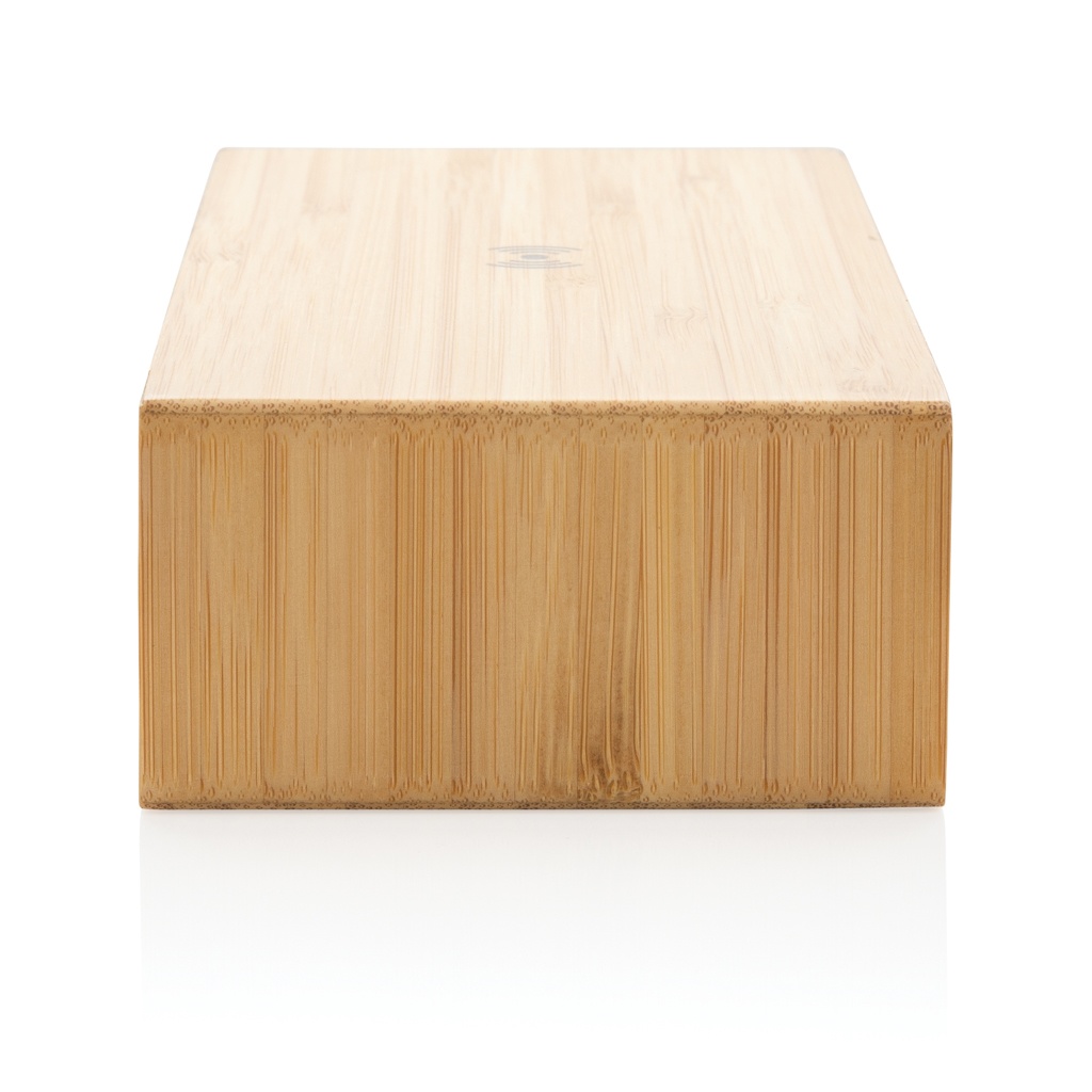 5W langaton laturi ja herätyskello bambuisella ulkokuorella ja 24-tunnin näytöllä. Takapuolella USB portti langallista latausta varten. Sisältää 150 senttisen PVC vapaan TPE micro USB kaapelin. Sopii yhteen kaikkien QI-sopivien laitteiden, kuten uusimpien Android ja iPhone -puhelimien, kanssa. Sisääntulo 5V/1.5A; langaton ulostulo 5V/1A - 5W; 1 USB portti, 5V/1A