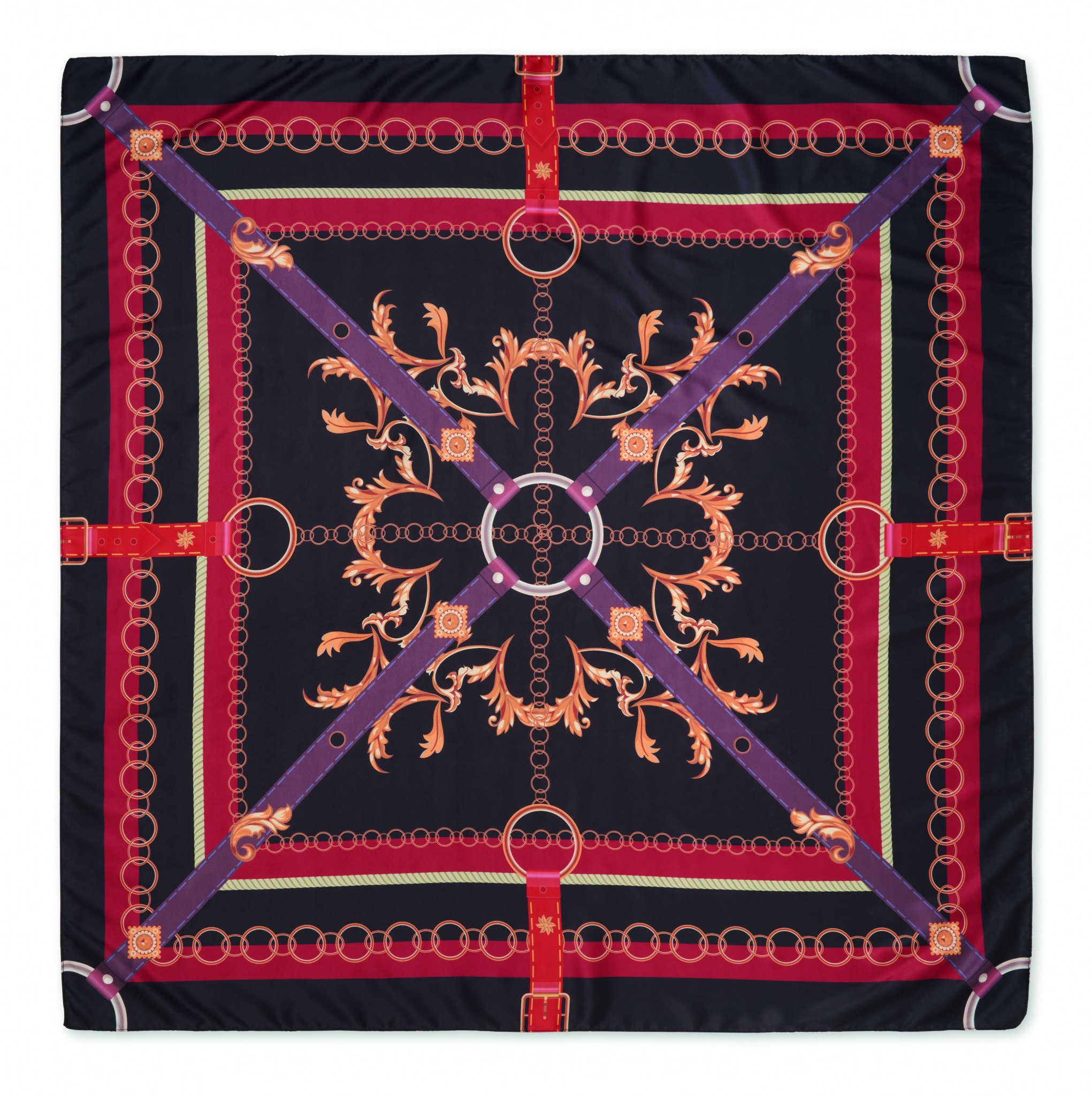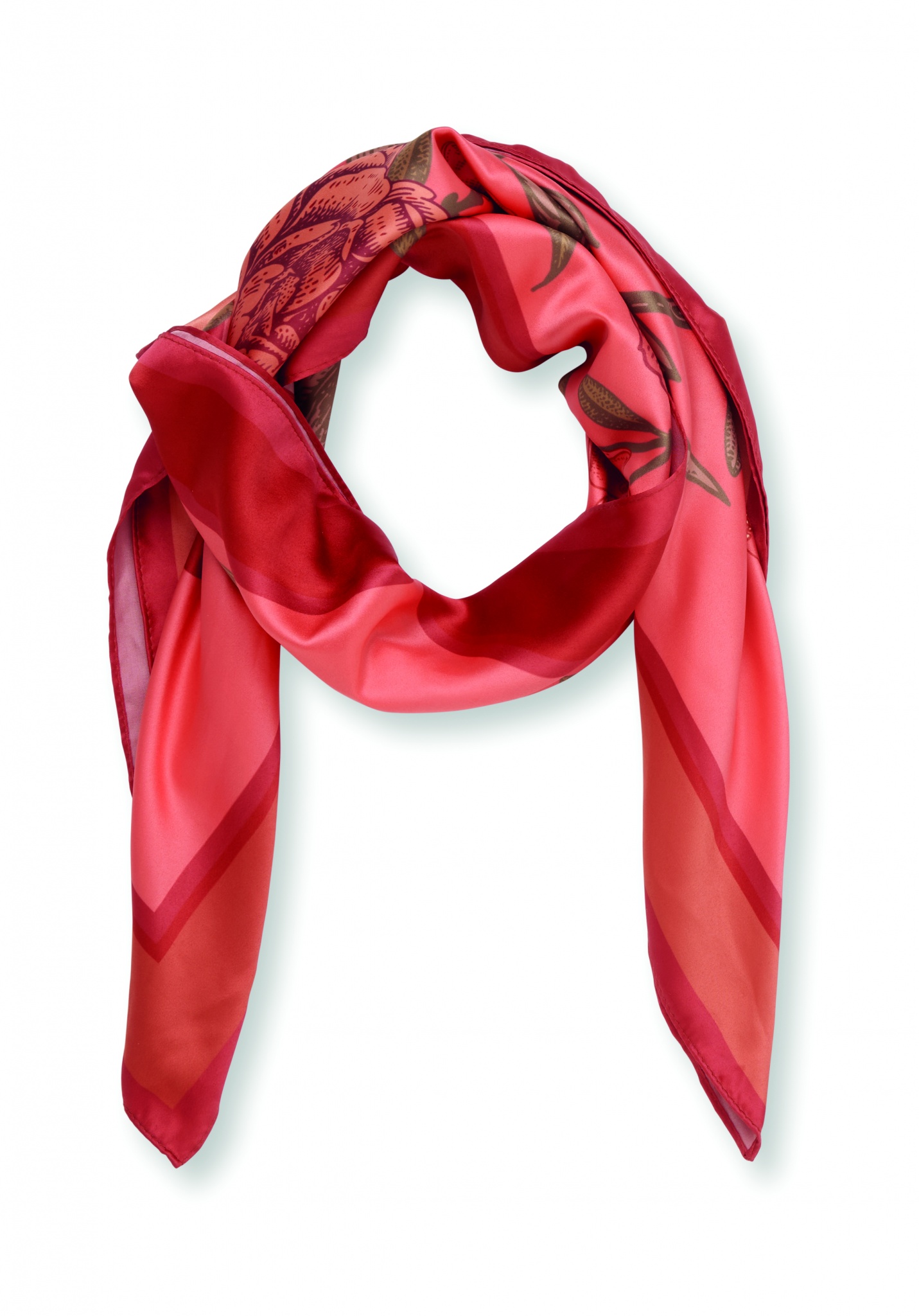 Kierrätyssatiinipolyesteristä valmistettu värikäs huivi, jossa on kuvio.