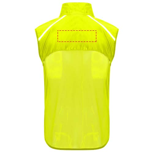 Tuulenpitävä ja hengittävä. Edessä vetoketju yhteensopivalla leukasuojalla. Joustava ommel käsiaukoissa ja alareunassa. Selän alaosa mikrorei'itettyä kangasta. Heijastekuvioita yläosassa, etupuolella ja takana. Tasku kuminauhalla liivin säilyttämistä ja ranteessa kantamista varten. Irrotettava etiketti.