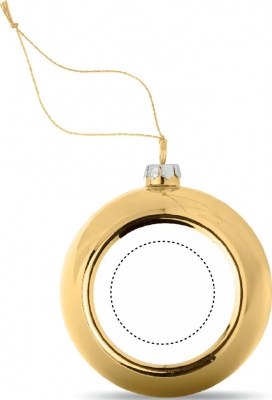 Kiiltävä PP joulupallo, sisältää levyn sublimaatiopainatukseen. Halkaisija 6 cm.