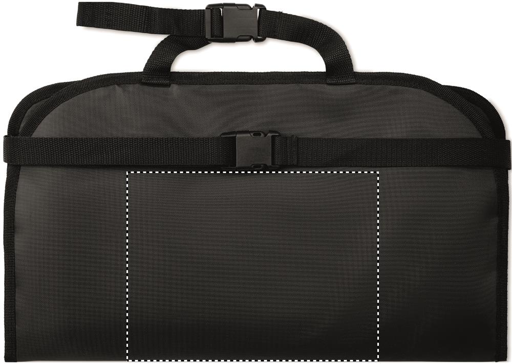 420D- polyesteristä valmistettu kangaslokerikko auton istuimen takaosaa varten, tuotteessa on useita erikokoisia lokeroita.