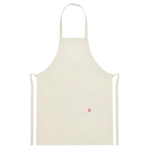 Jos etsit ensiluokkaista puuvillaesiliinaa, Khana-esiliina on ehdottomasti oikea valinta. Se on valmistettu 280 g/m²:n kanvas-kankaasta, mikä tekee siitä paksun ja vahvan, mutta silti mukavan käyttää. Siinä on kaksi vierekkäistä taskua (koot 25 x 26 cm ja 16 x 18 cm) ja 65 cm:n selkäpuolelta kiinnitettävät sidontanauhat.