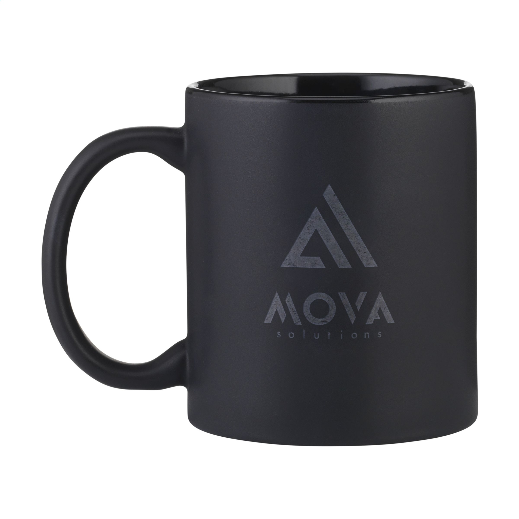 Laadukas keraaminen muki, jossa on mattamusta ulkopinta ja kiiltävä musta sisäpuoli. Astianpesukoneen kestävä. Jälki on astianpesukoneessa testattu ja sertifioitu: EN 12875-2. Tilavuus 350 ml.
