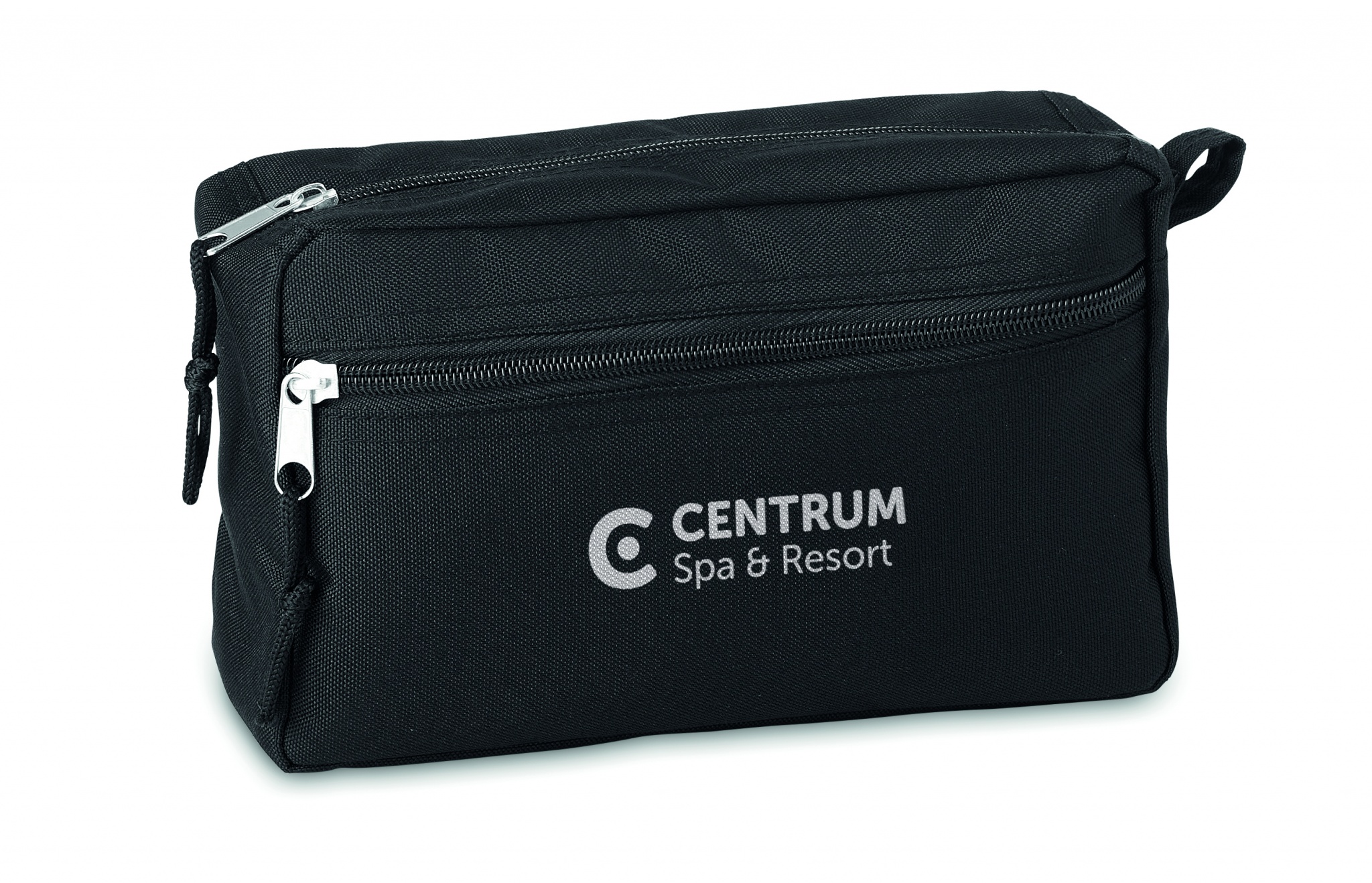 600D RPET- kosmetiikkalaukku, kaksinkertaisella vetoketjulla.