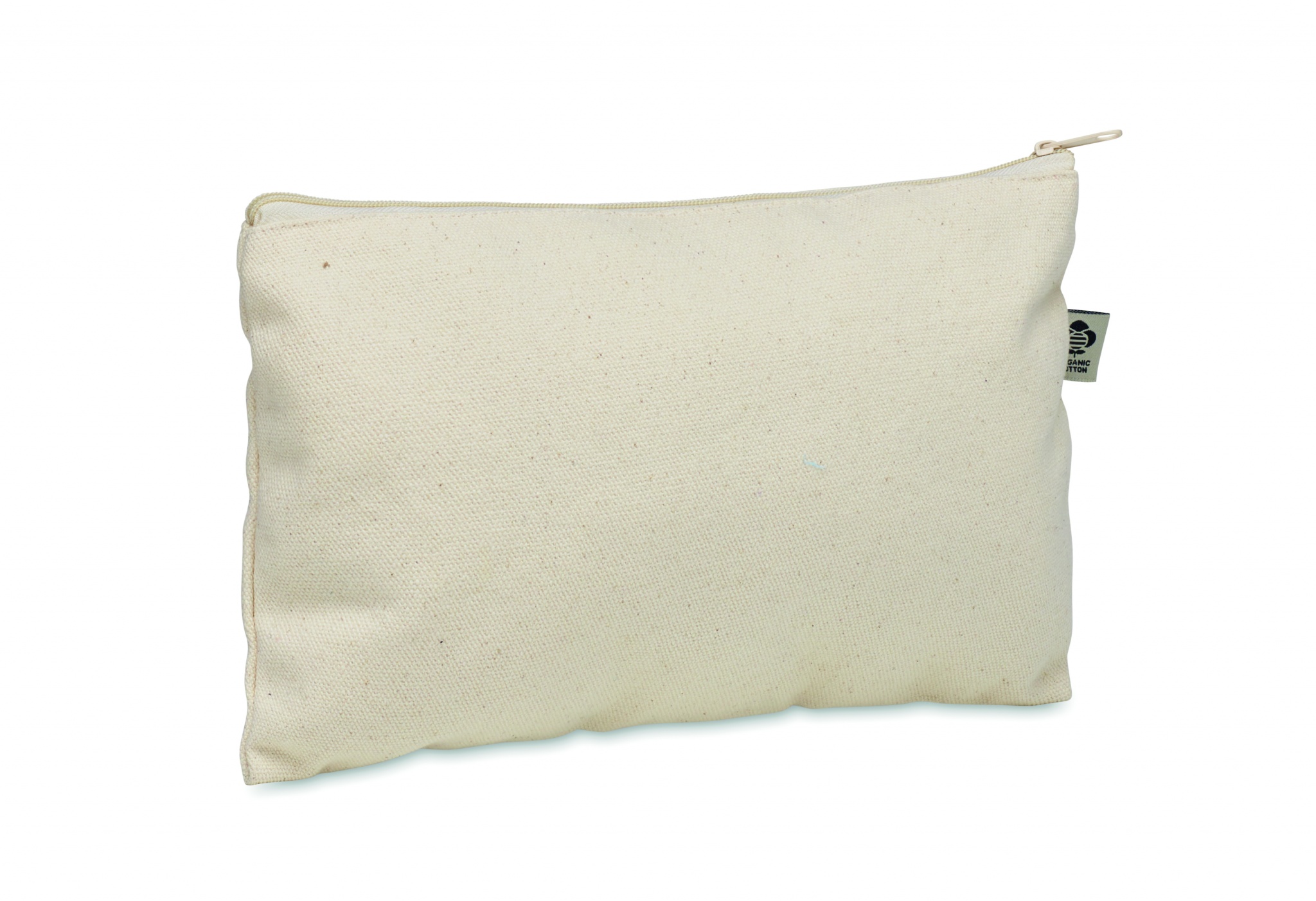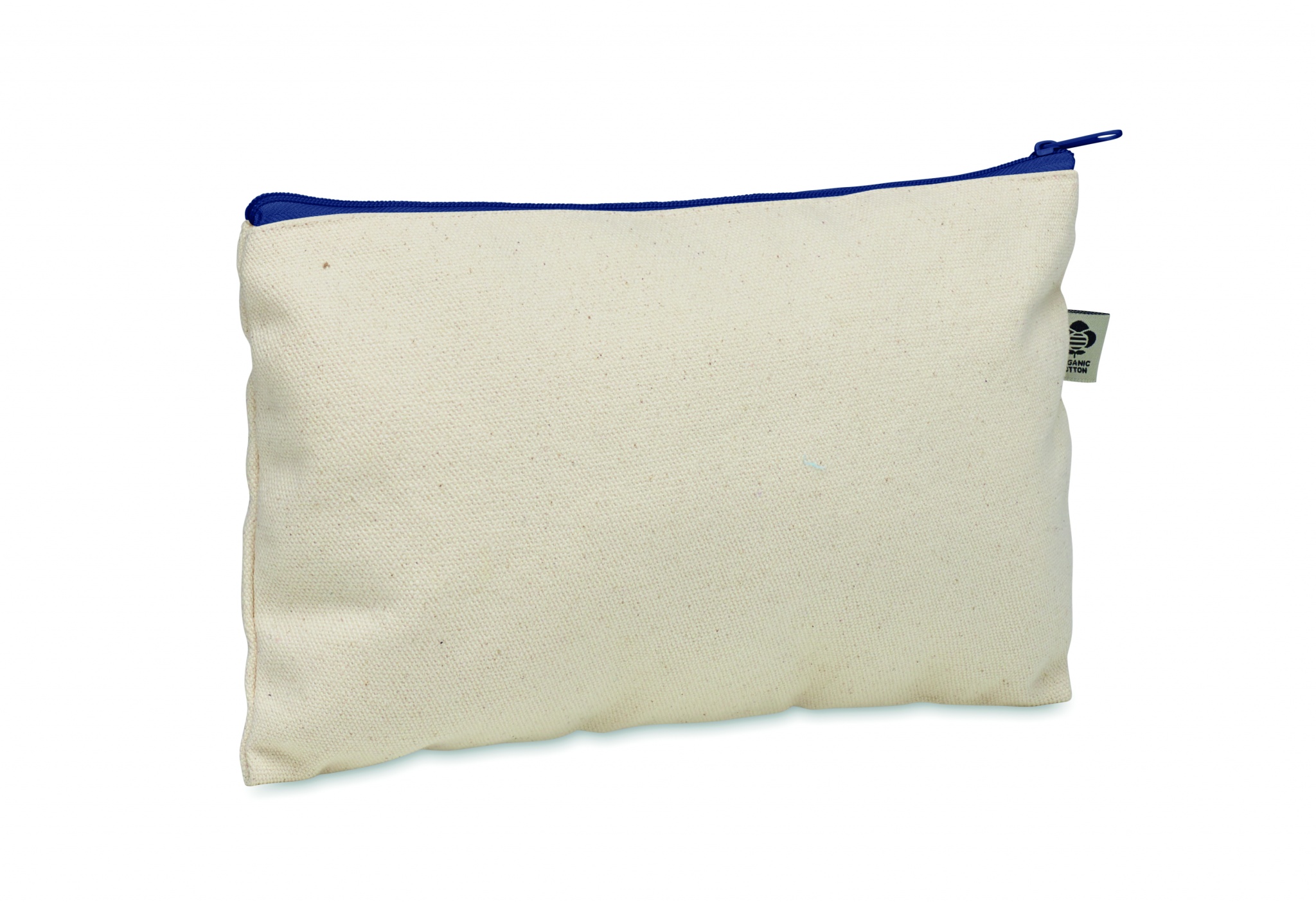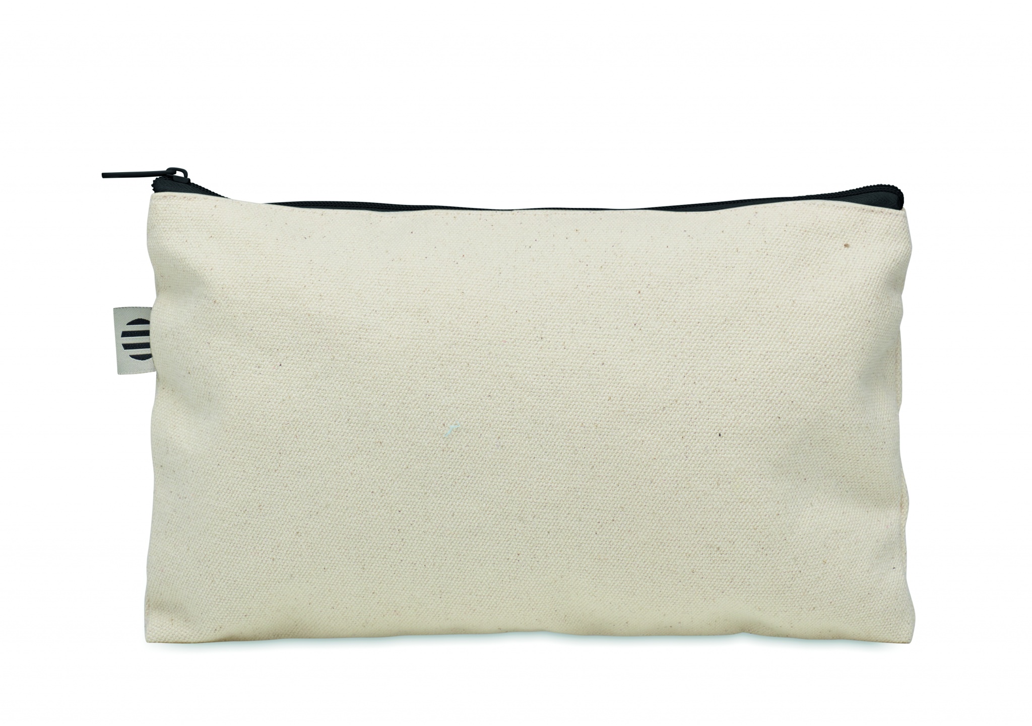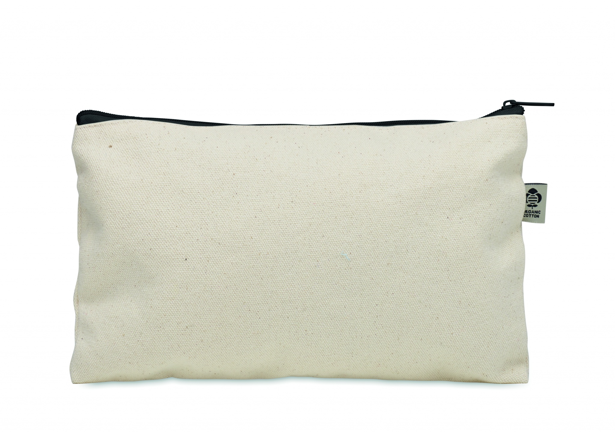 Kosmetiikkapussi luomupuuvillaa värillisellä vetoketjulla. 340 g/m².
