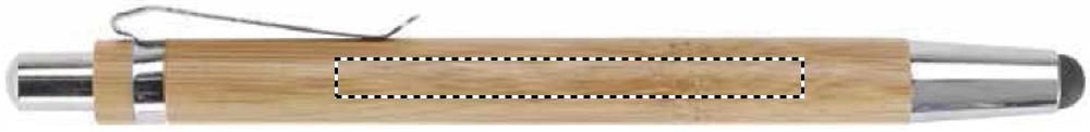 Bambusta valmistettu kuulakärkikynä sinisellä musteella ja kosketusnäyttöpäällä, krominväriset yksityiskohdat.
