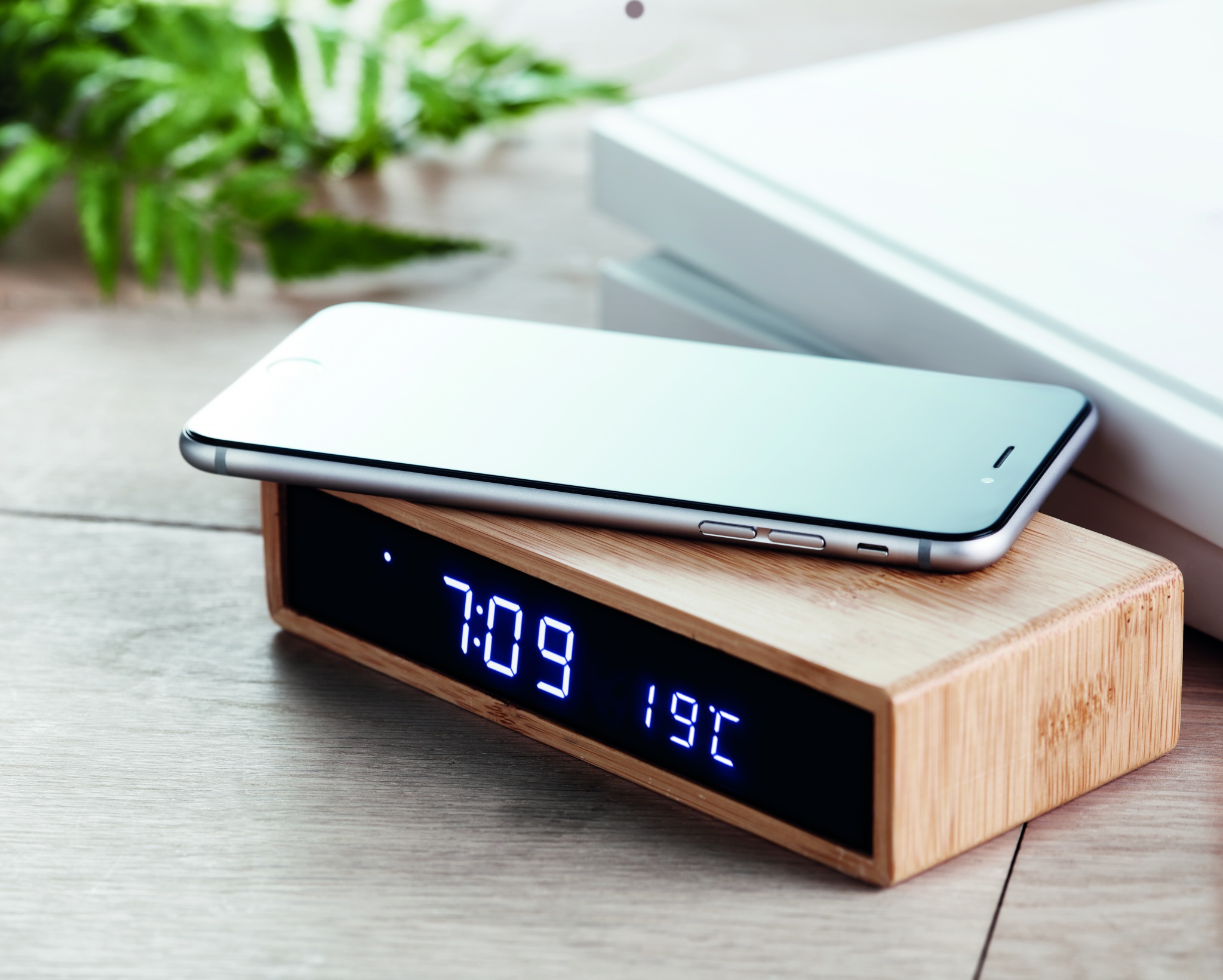 Langaton laturi sininen LED- näyttö, herästykello ja lämpötilan näyttö. Sisältää 2- napaisen AC-DC pistokesovittimen. Lähtövirta DC5V/1A (5W). Yhteensopivat laitteet, iPhone8, X ja uudemmat laitteet. Tuote ei sovellu käytettäväks Isossa-Britanniassa.