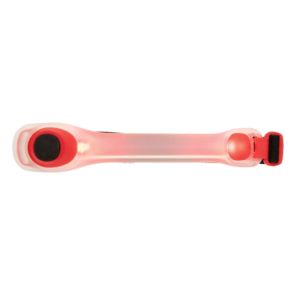 Led-valolla varustettu turvanauha, joka on helppo kiinnittää käsivarteen. Nauha lisää näkyvyyttä ulkona pimeässä.