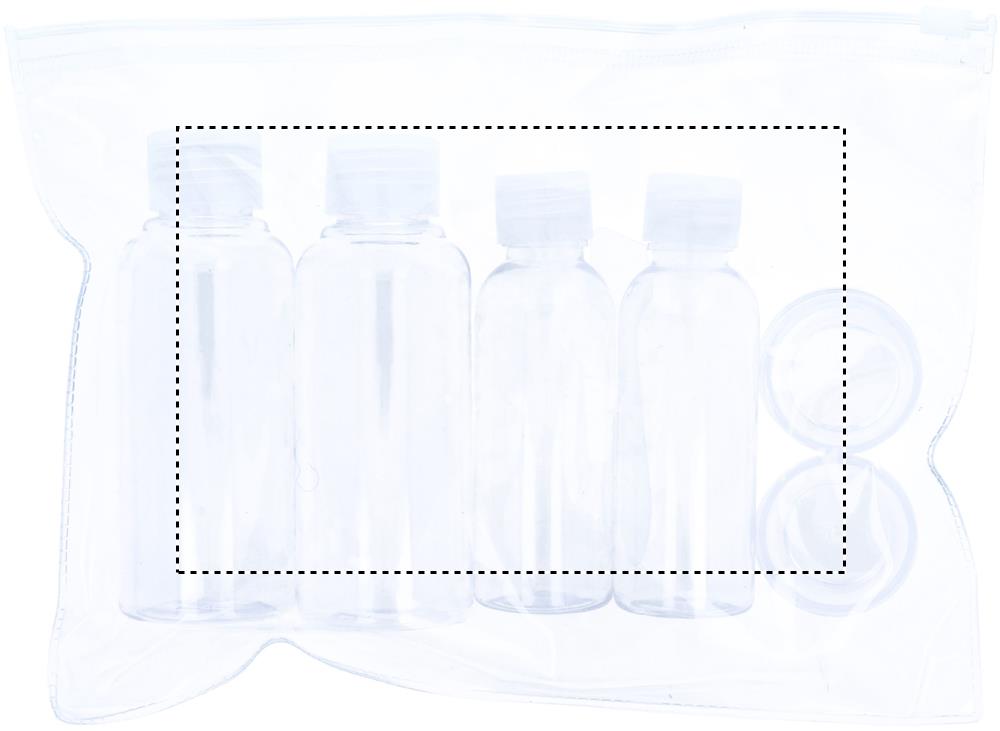 Lentomatkustuspussi, 6 tyhjää pulloa. ( 100 ml, 50 ml, ja 10 ml)
