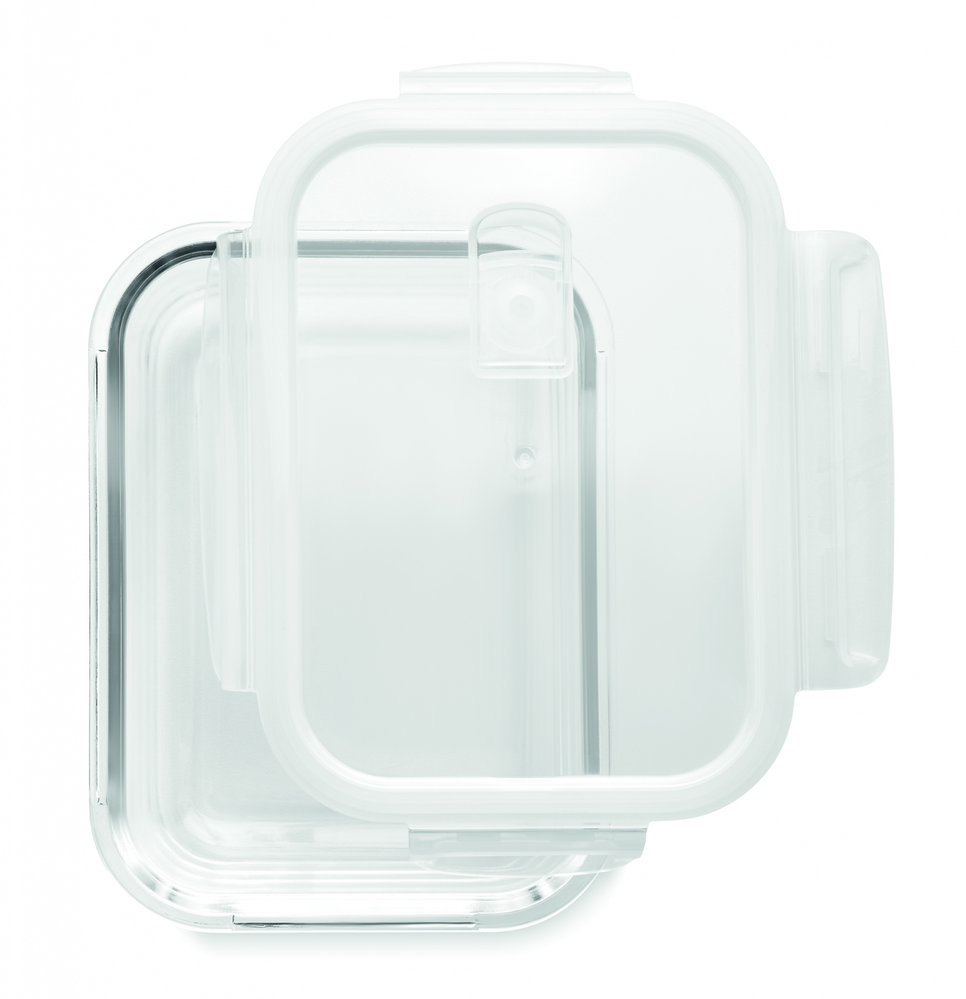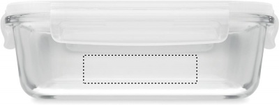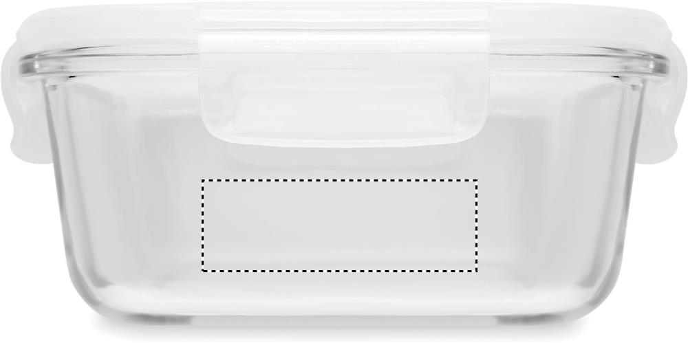 Borosilikaattilasista valmistettu 900 ml lounasrasia ilmatiiviillä polypropeenikannella, tuote on mikroaaltouunin kestävä.