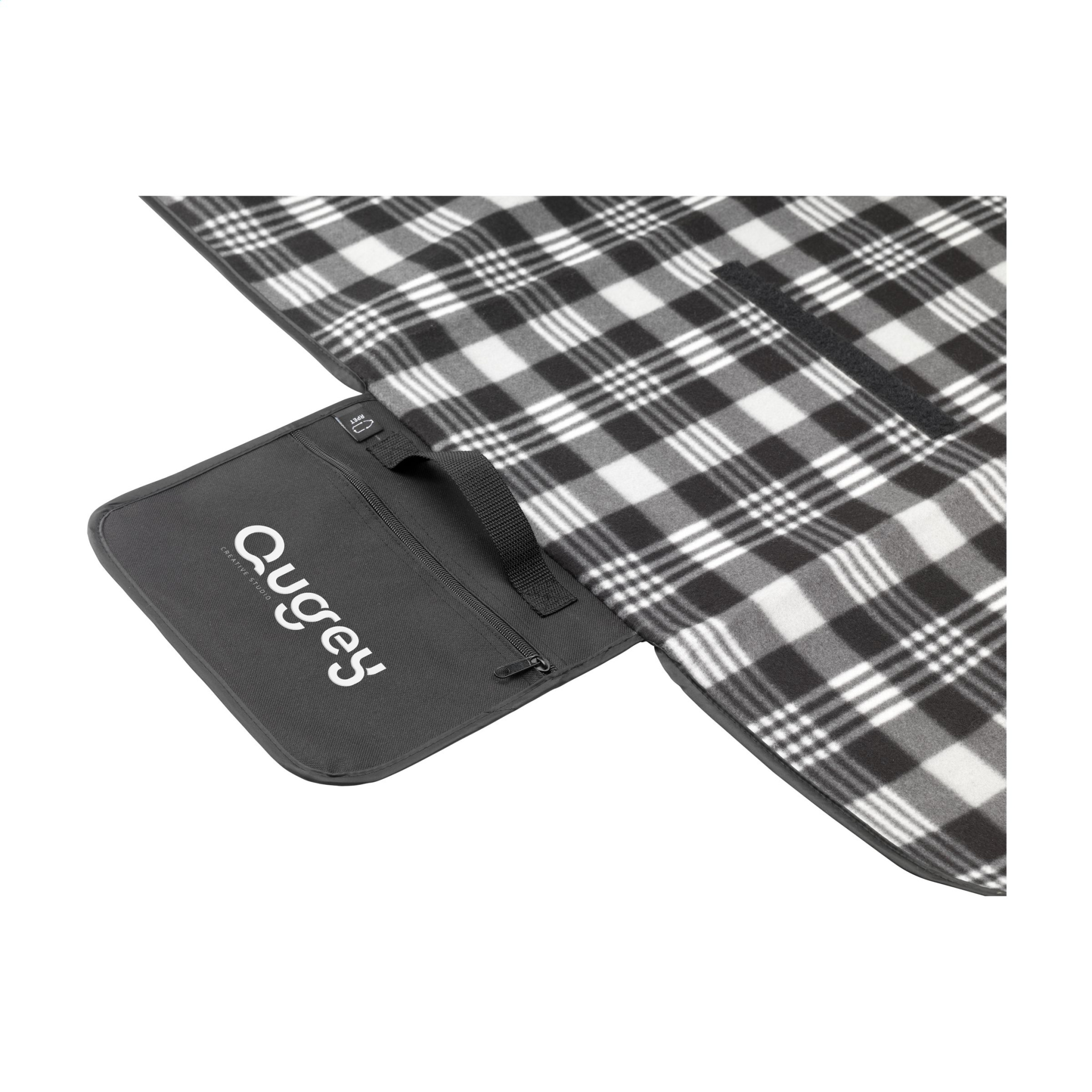 Vau! Piknik-peitto, jossa kaunis ruudullinen kuvio. Pintakerros on erittäin pehmeä ja valmistettu 100 % RPET:stä (130 g/m²). Alapuoli on valmistettu vettä hylkivästä PEVA-materiaalista ja suojaa kosteudelta ja lialta. Mukana vetoketjullinen tasku, kantohihna ja tarrakiinnitys. Helppo taittaa kokoon ja kuljettaa. GRS-sertifioitu. Kierrätysmateriaalia yhteensä: 55 %. Mitat avattuna 121 x 135 cm.