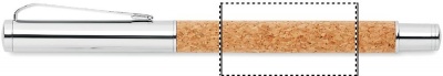 Metallinen kynäsetti kuulakärkikynällä ja rollerkynä korkkirungolla, sinisellä ja mustalla musteella. Pakattuna korkista valmistettuun lahjapakkaukseen. Korkki on luonnonmateriaali, strukturaalinen laatu ja pinnan huokoisuus voi aiheuttaa eroavaisuuksia tuotteissa painatuksen jälkeen