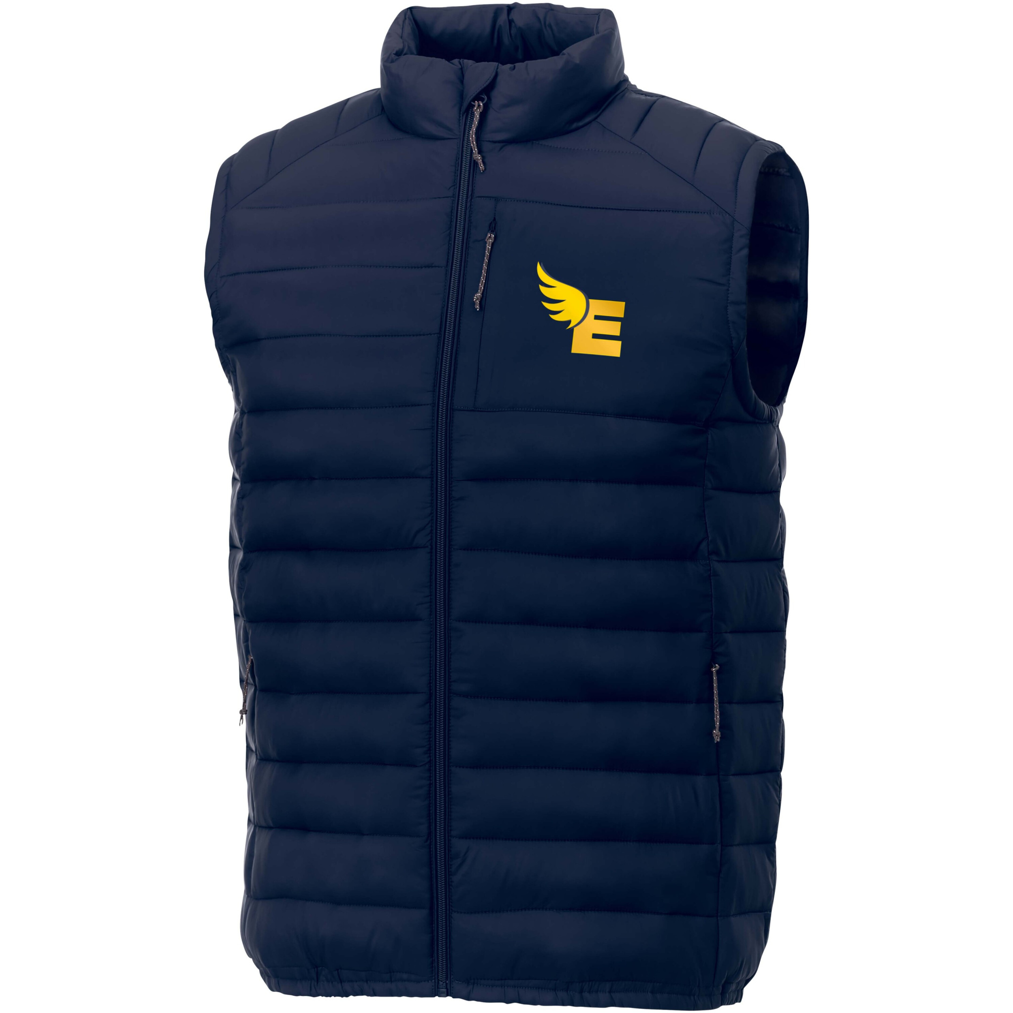 Pallas miesten toppaliivi - GRS-sertifioitu, kierrätetty materiaali. Täydellinen yhdistelmä tyyliä ja toimivuutta. Myrskyläppä suojaa kylmältä ja tuulelta. Vetoketjulla suljettava rintatasku tarjoaa turvallisen tilan välttämättömille tavaroillesi. Joustava helma tuo tyylikkään lisän ja takaa samalla paremman istuvuuden. Liivi on valmistettu kestävästä 38 g/m² dull cire 380T nylon-kudotusta kankaasta. Polyesteristä valmistettu eriste, joka tarjoaa kevyttä lämpöä mukavuudesta tinkimättä.