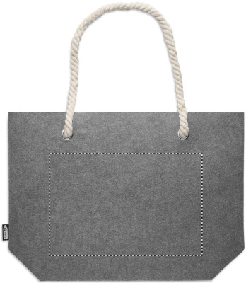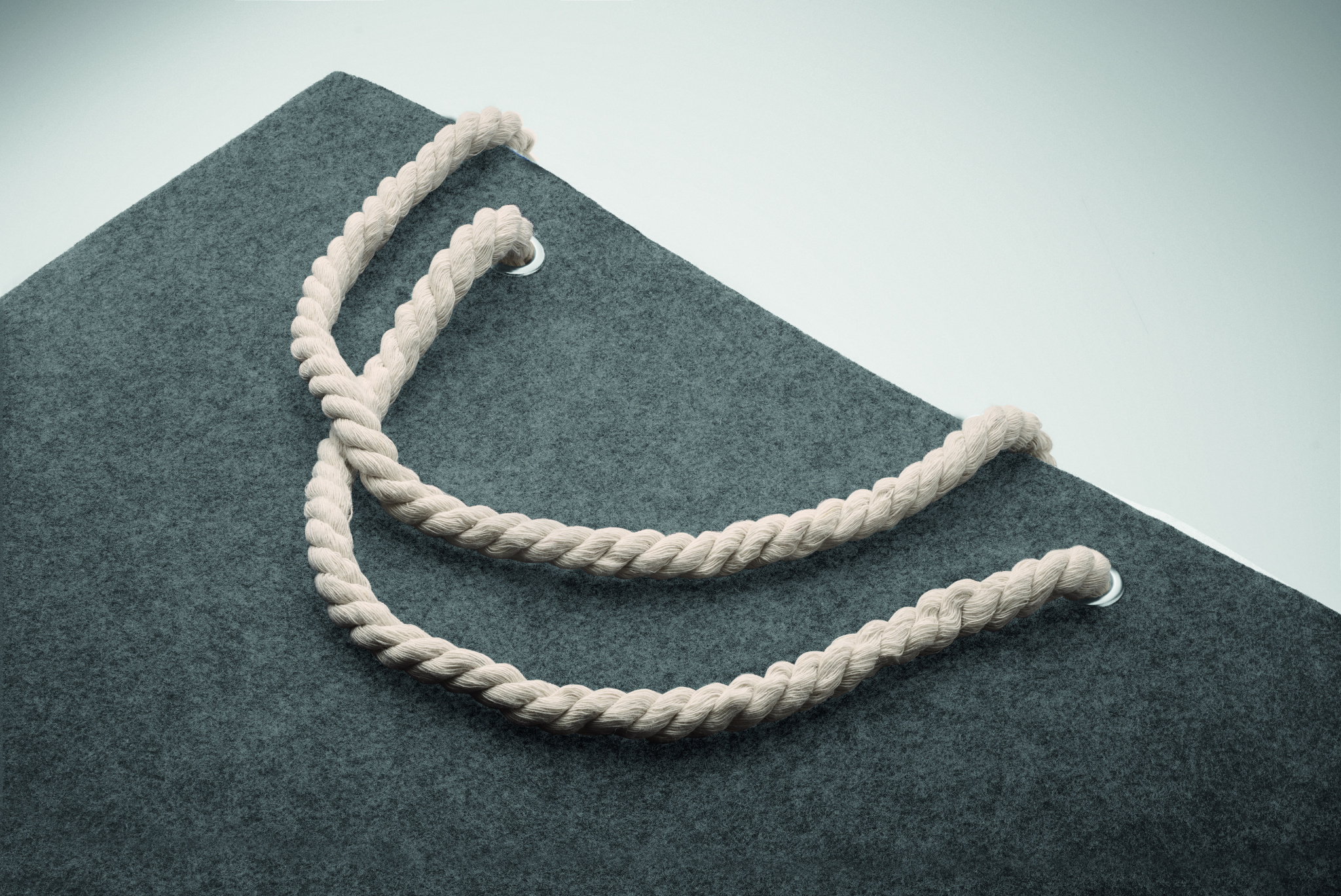RPET-huopainen rantalaukku tai ostoskassi nyörikahvalla. Huovan paksuus: 2 mm.