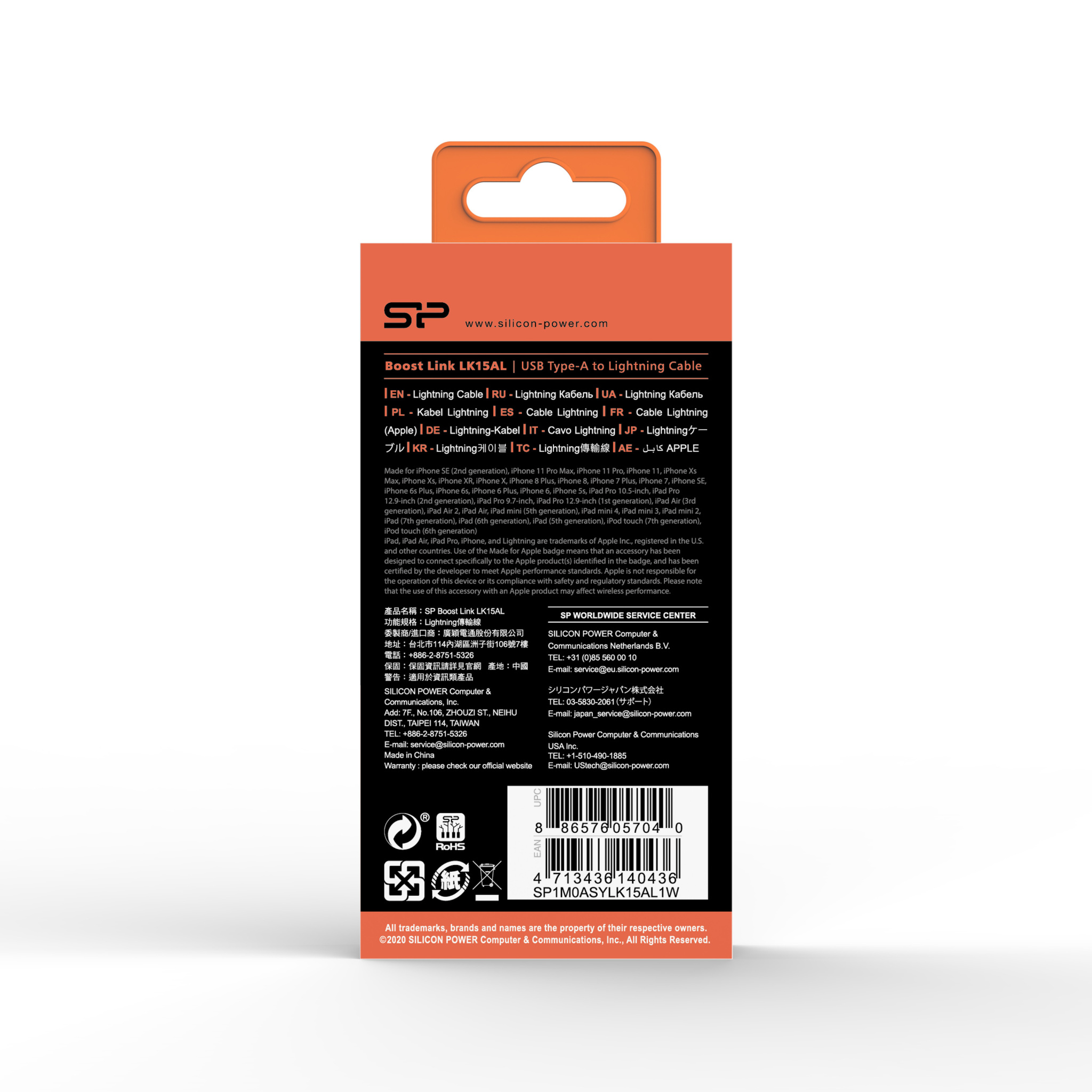 Laadukas LK15AL-kaapeli on suunniteltu liitettäväksi laitteisiin, kuten iPod, iPhone, iPad. Se on Mfi-sertifioitu takaamaan turvallisen latauksen yhteensopivuuden. USB Type-A - Lightning-liitännällä varustettu kaapeli tukee jopa 12 W (max. 2,4 A) lähtötehoa nopeaa latausta varten sekä synkronointi- ja latausnopeuksia jopa 480 Mbps, jolloin voit siirtää videoita, musiikkia tai valokuvakirjastoja sekunneissa.