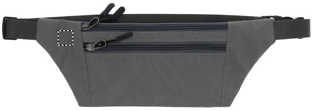 Jakardi polyesteri vyölaukku, edessä 2 vetoketjullista taskua ja takana 1 vetoketjullinen tasku, säädettävä vyötäröhihna.