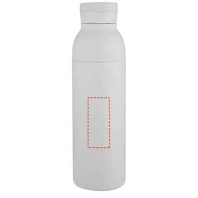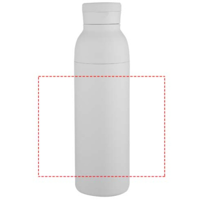 Divsienu, vakuuma izolēta, RCS sertificēta nerūsējošā tērauda ūdens pudele ar diskrētu, iebūvētu silikona rokturi vāciņā. Divdaļīgā konstrukcija atvieglo tīrīšanu, savukārt izturīgais pulverkrāsojums un vara pārklājums nodrošina ilgstošu veiktspēju. Iepakota pārstrādāta kartona dāvanu kastītē. Tilpums: 650 ml.