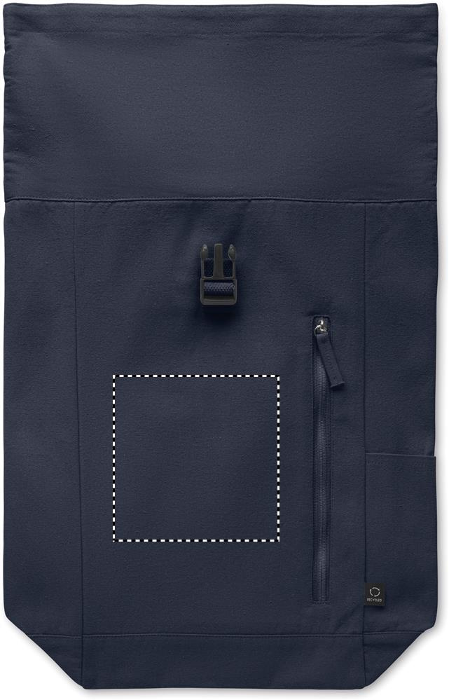 Rullējama mugursoma ar āķa un cilpas aizdari no 390 gr/m² pārstrādāta kokvilnas (80%) un pārstrādāta poliestera (20%). Priekšējā kabata ar rāvējslēdzēju.