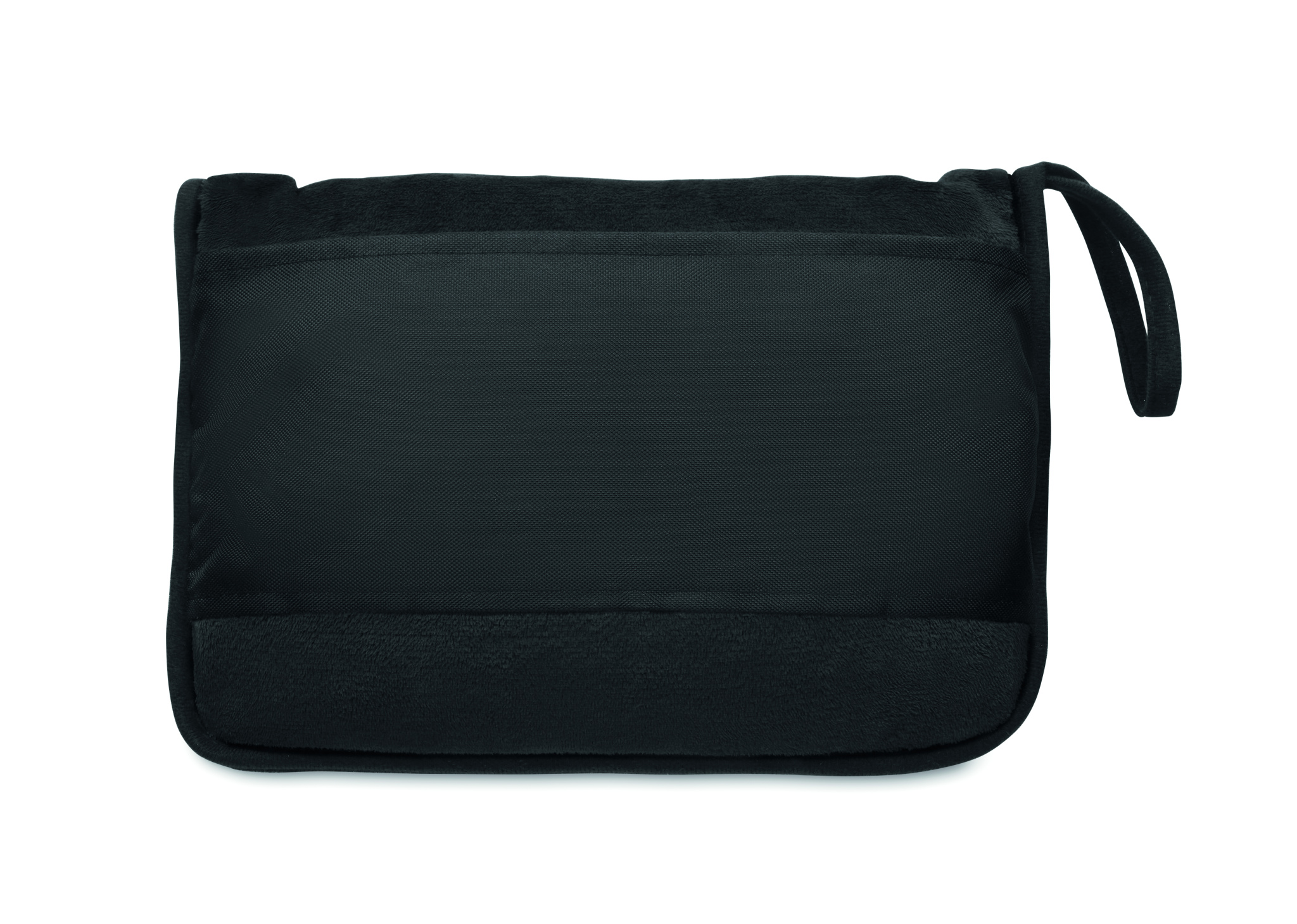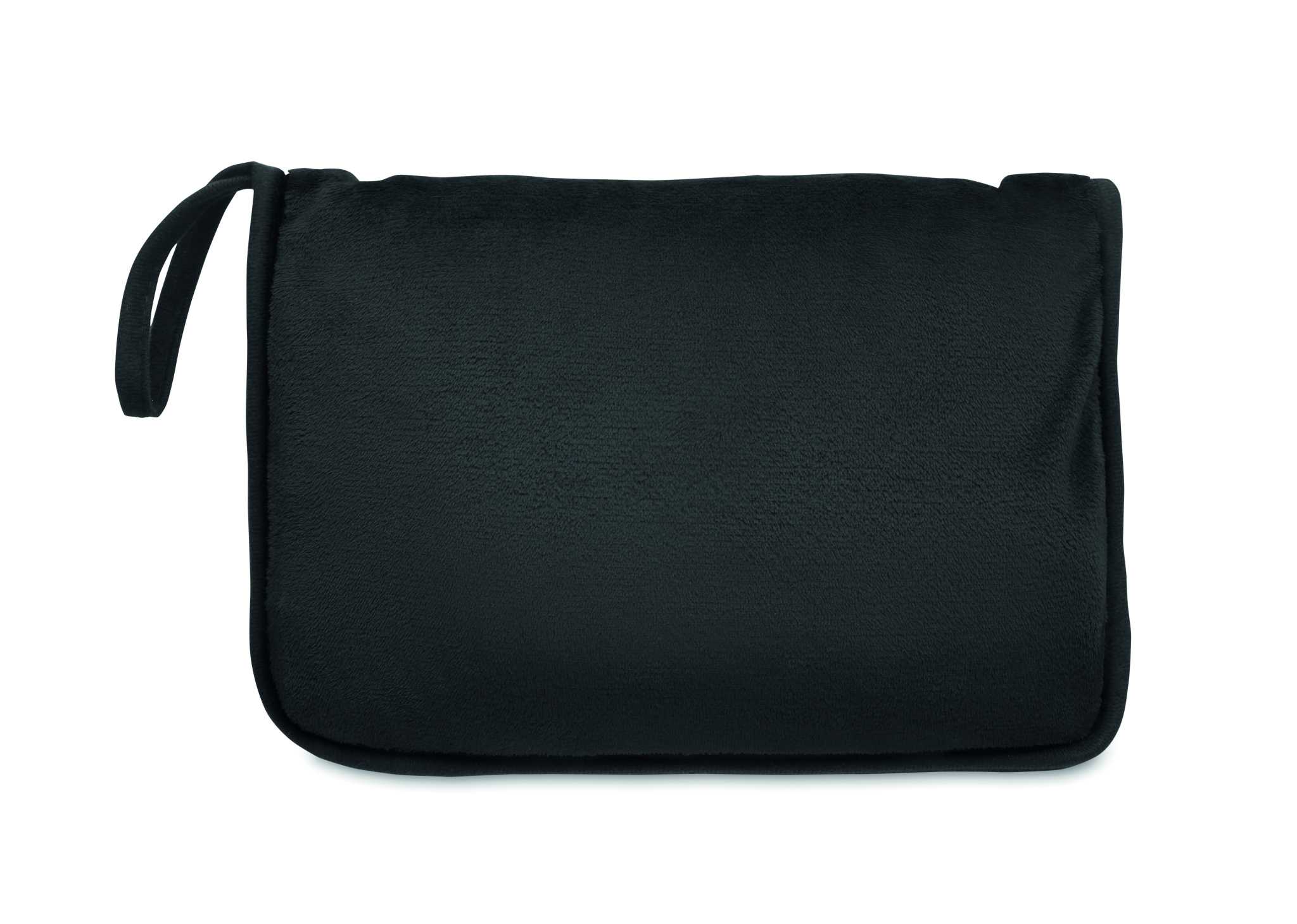 2 in 1 travel flannel blanket and/or pillow set in 220 gr/m². The item can be folded. Including a 600D RPET polyester shoulder strap and handle.