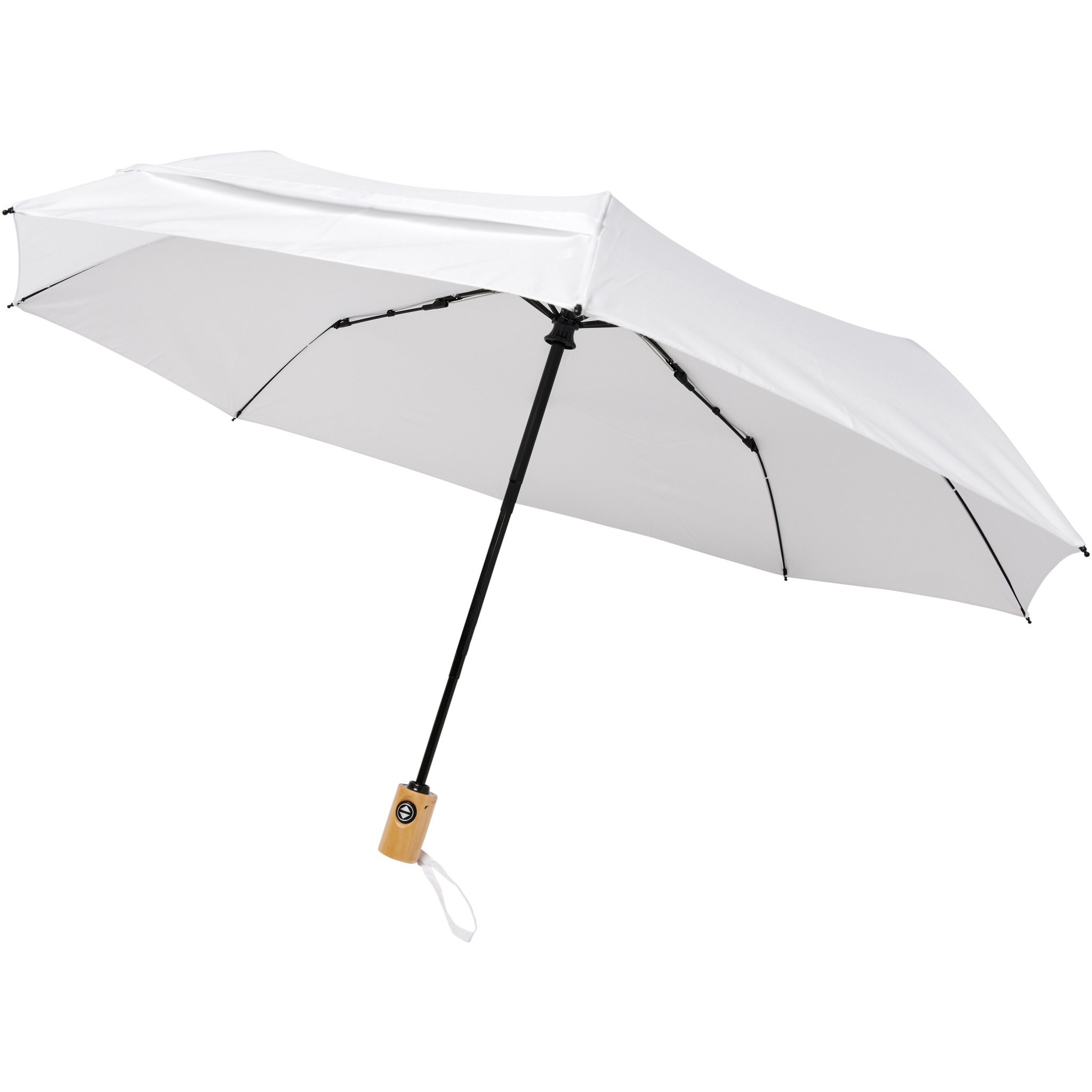Автоматически открывающийся и закрывающийся зонт с куполом из эпонж полиэстера и переработанного ПЭТ-пластика. Прочный металлический стержень, высококачественная рама со спицами из стекловолокна, обеспечивающая максимальную гибкость в ветреную погоду. Поставляется с чехлом и может легко поместиться в сумку или рюкзак для удобного ношения.