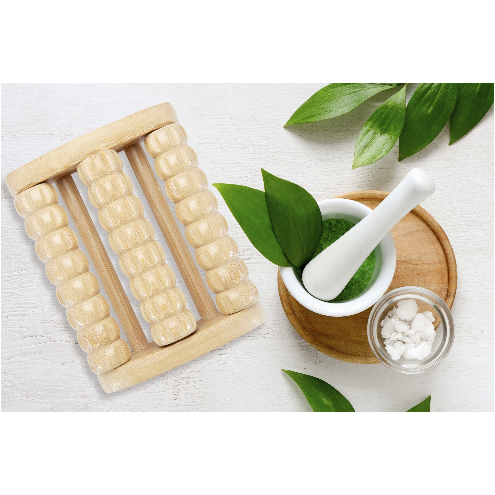 Бамбуковый роликовый массажер для стоп имеет 3 ряда массажных стержней. Просто положите этот массажер на пол, а затем начните перемещать на нем свои стопы, чтобы получить приятное и расслабляющее ощущение. Используемый бамбук поставляется и производится в соответствии со стандартами устойчивого развития.