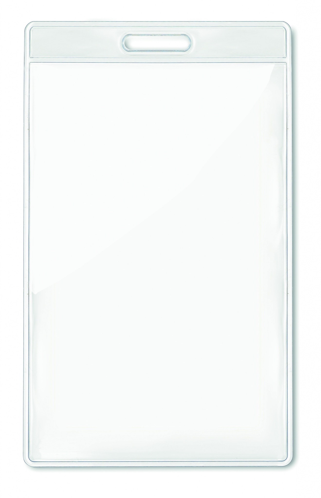 Прозрачный бейдж размером 7,5х12,5 см.