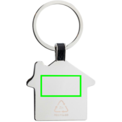 Брелок в форме домика из переработанного цинкового сплава RCS. Общее содержание переработанного материала: 84% от общего веса изделия. Сертификация RCS гарантирует полностью сертифицированную цепочку поставок переработанных материалов. Упакован в бумажный пакет.