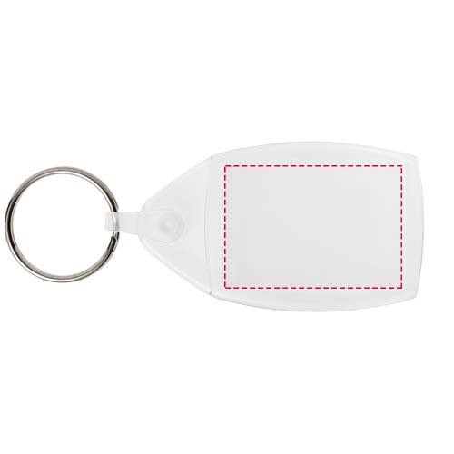 Прозрачный брелок P6 с металлическим разъемным кольцом и динамическим пластмассовом зажимом. Крепление под пластмассовый зажим представляет собой плоский профиль, что делает его идеальным для пересылки. Размеры печатной вставки: 3,5 см x 2,4 см.