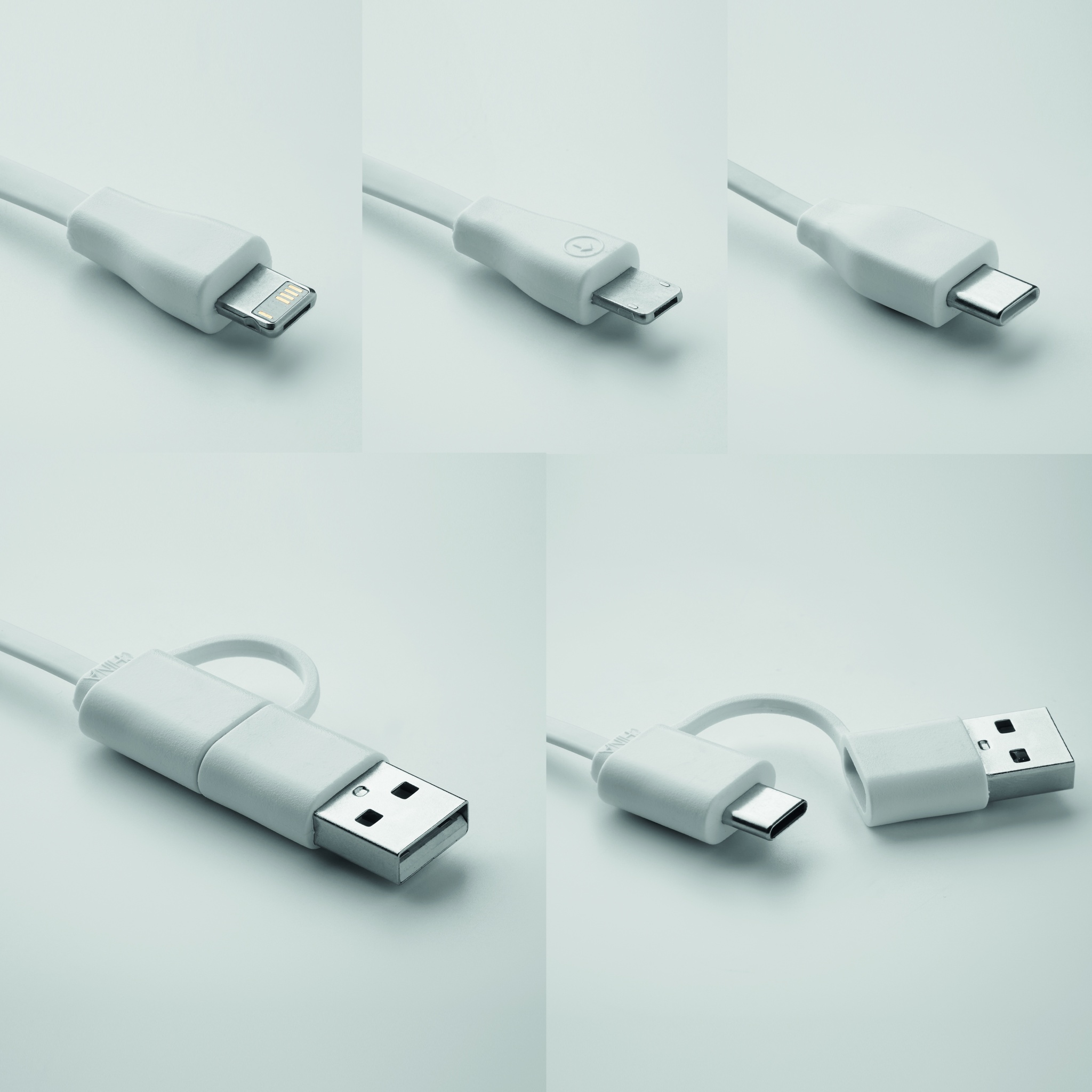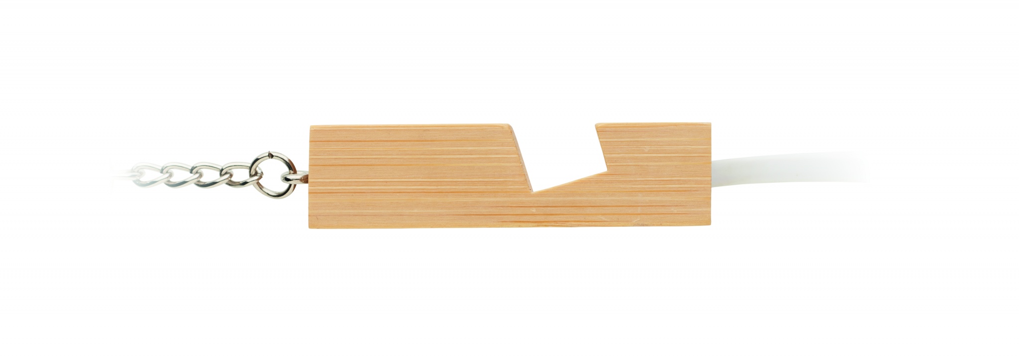 Брелок для ключей и бамбуковая подставка для телефона в комплекте с кабелями для зарядки. Вход: 2-в-1 Type-C и Type-A. Выход: Type-C и micro-B (2 в 1).