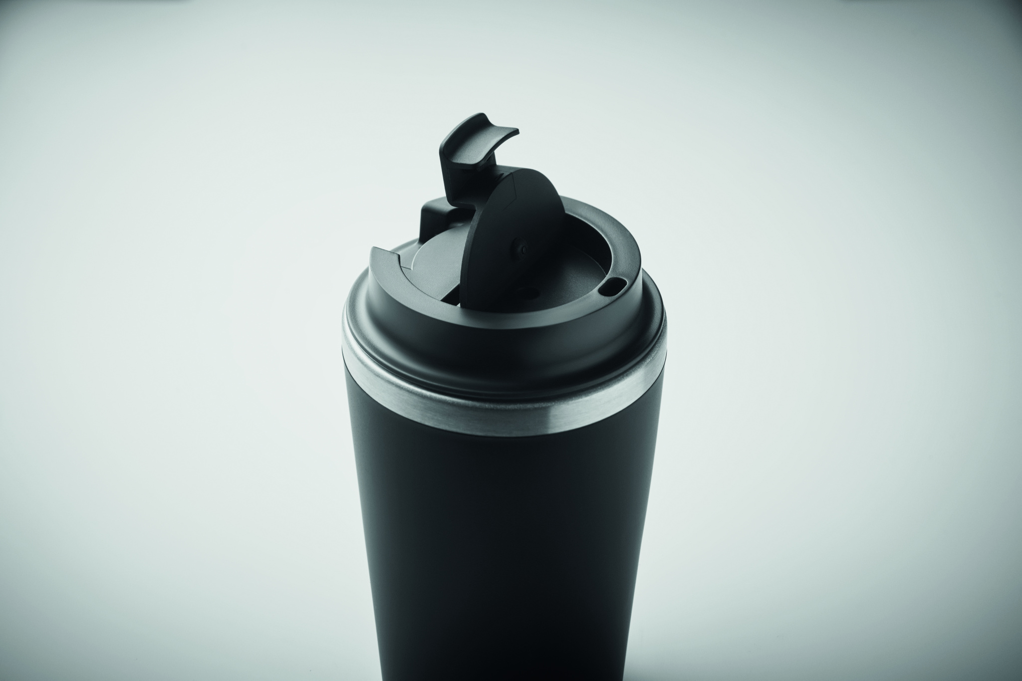 Double wall tumbler in PP outer wall with inner wall in recycled stainless steel (90% recycled stainless steel and 10% stainless steel) with a ceramic inner lining. Leak-free. Capacity: 350 ml.