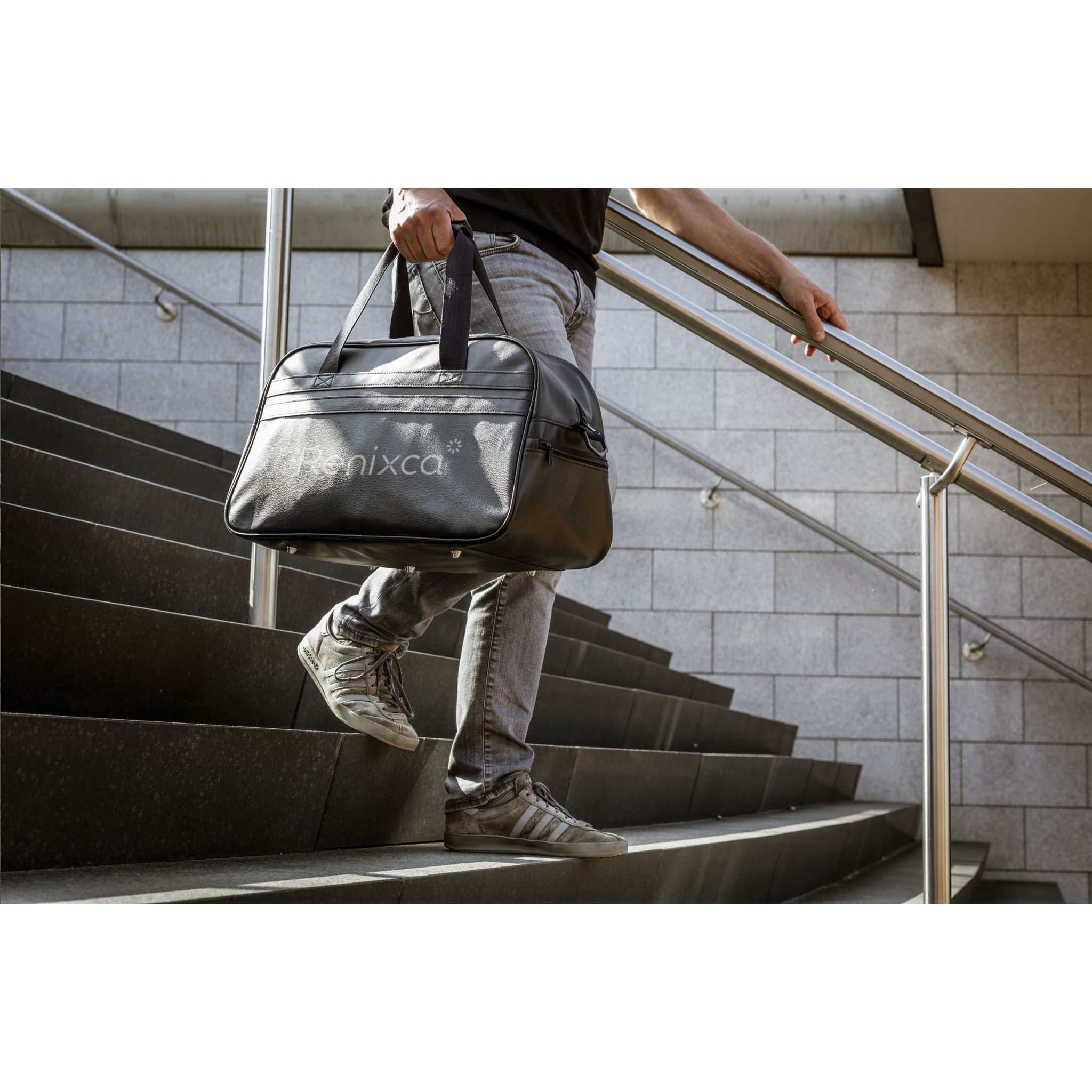 Практичная сумка для выходных из искусственной кожи ПВХ/ПУ с привлекательным дизайном. Вместительное основное отделение и карманы на молнии предлагают достаточно места для хранения ваших вещей для путешествия. Кроме того, сумка аккуратно отделана внутренней подкладкой и оснащена двумя прочными ручками, вставным основанием, защитными заклепками и съемным регулируемым плечевым ремнем. Эта сумка для выходных имеет привлекательную матово-черную отделку и изготовлена из высококачественных материалов, которые гарантируют долговечность этого продукта. Вместимость около 21,5 литров.