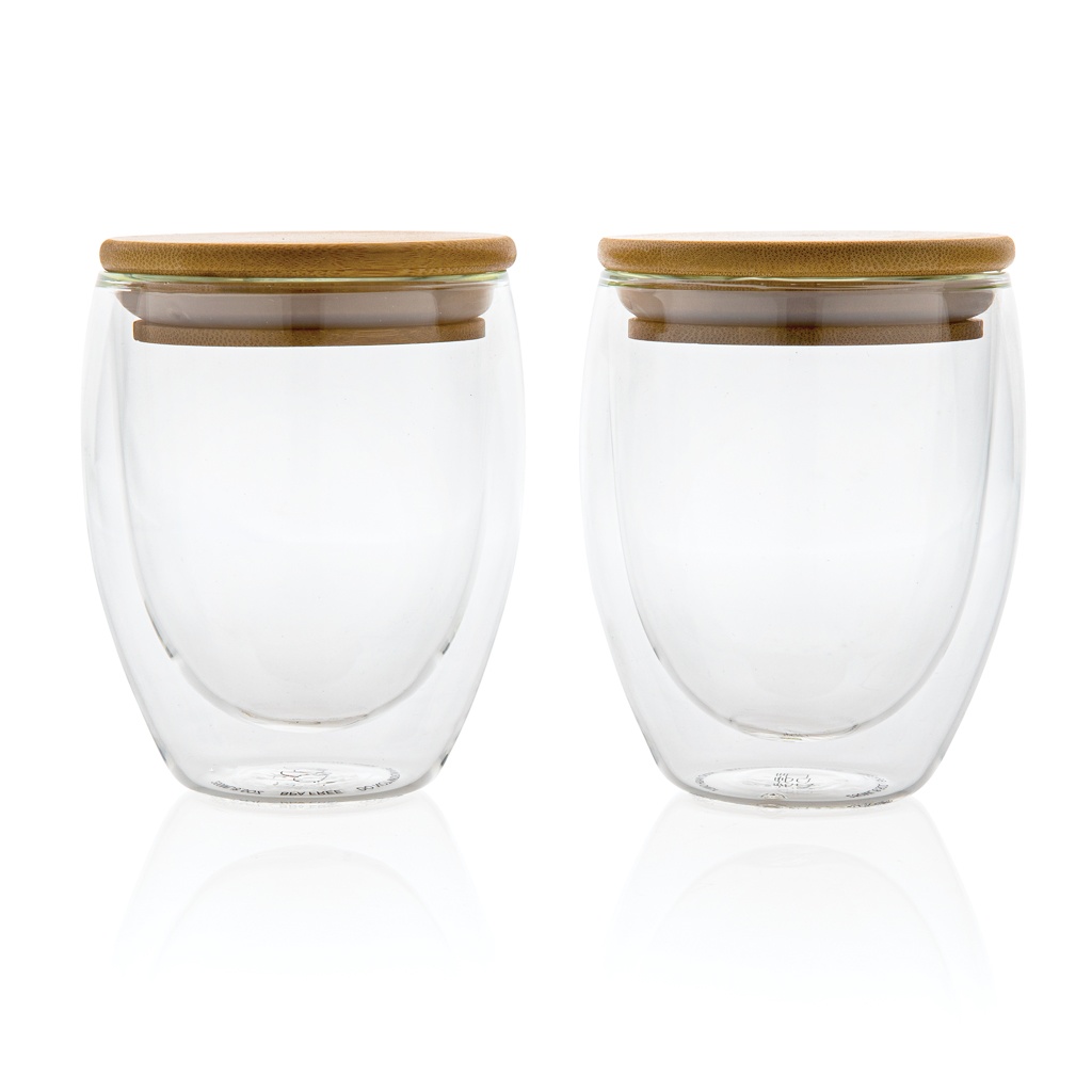 Двойные стенки из боросиликатного стекла с бамбуковой крышкой 250 мл, набор из 2 предметов