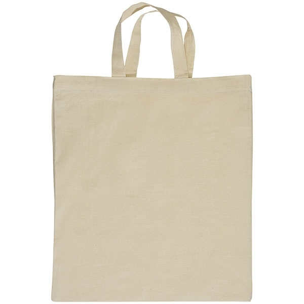 Изготовлена из материала OEKO-TEX плотностью 140 г/м², натурального цвета, сумка из 100% хлопка с двумя короткими ручками. Эти высококачественные экологически чистые хлопковые сумки можно использовать снова и снова, их можно стирать.