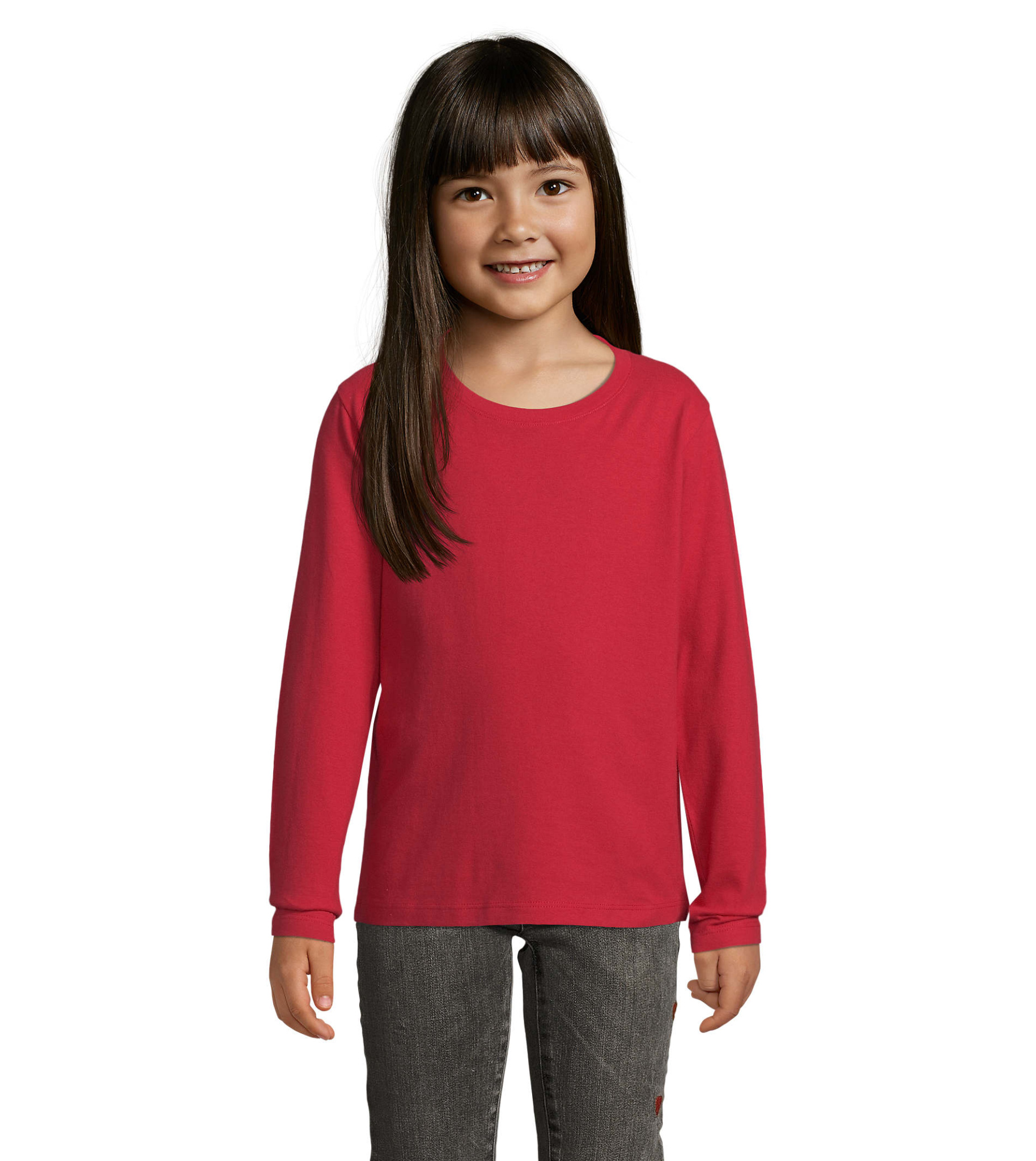 SOL'S IMPERIAL kids t-shirt 190g. Укрепляющая тесьма по вороту. Вырез отделан резинкой хлопок/эластан. Круглый вырез. Длинный рукав. Вырезано и сшито. Fabric details: 100% полугребенной хлопок ''Ringspun''. OEKO-TEX. Only Sold with Print.