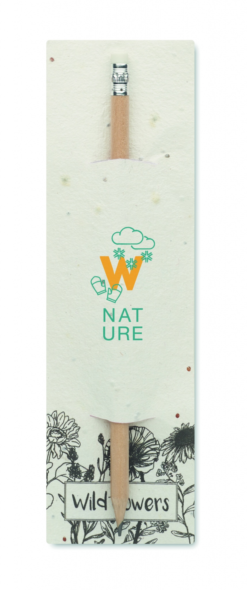 Карандаш из натурального дерева с ластиком. Поставляется в бумажном конверте с семенами (полевые цветы).