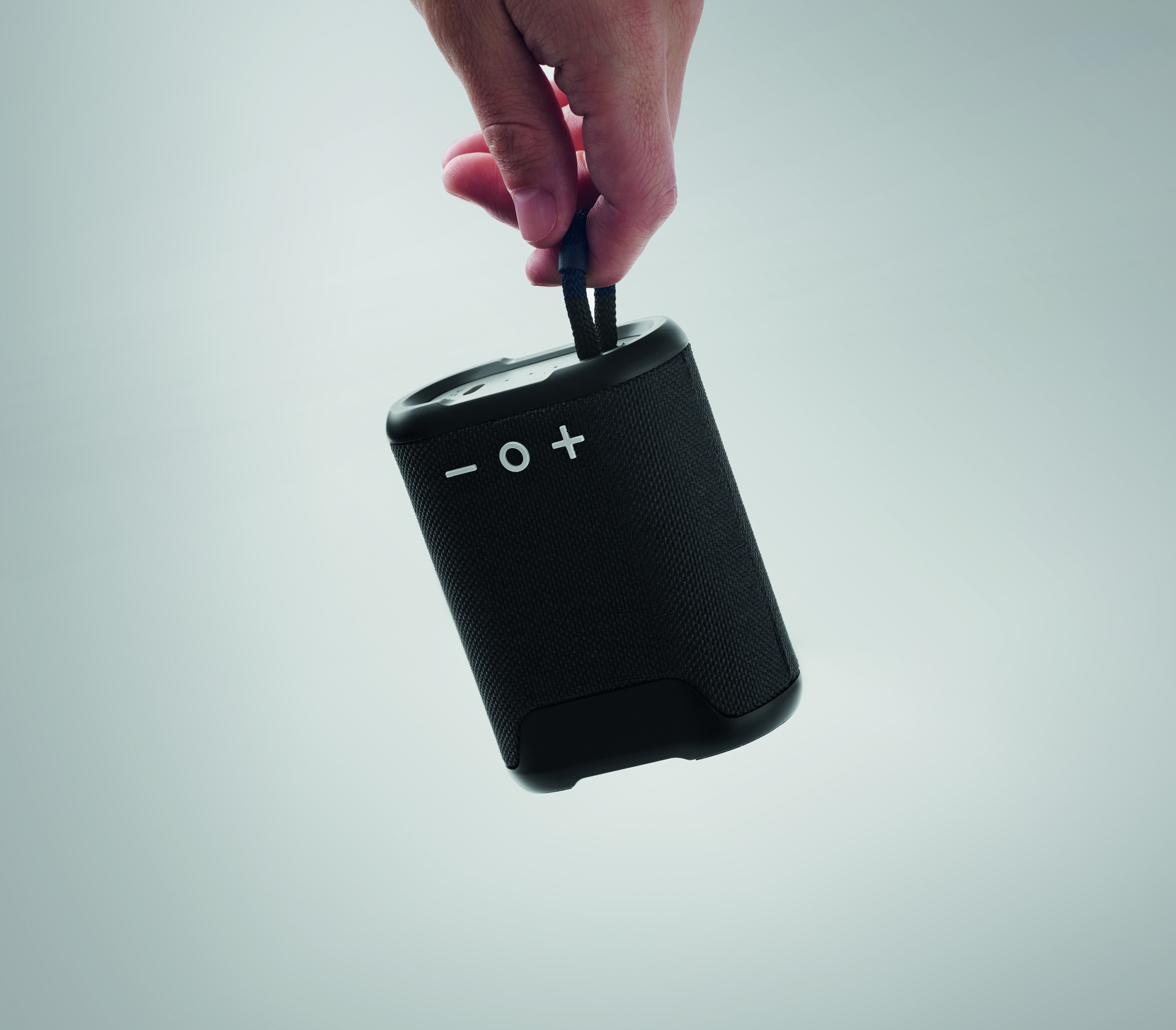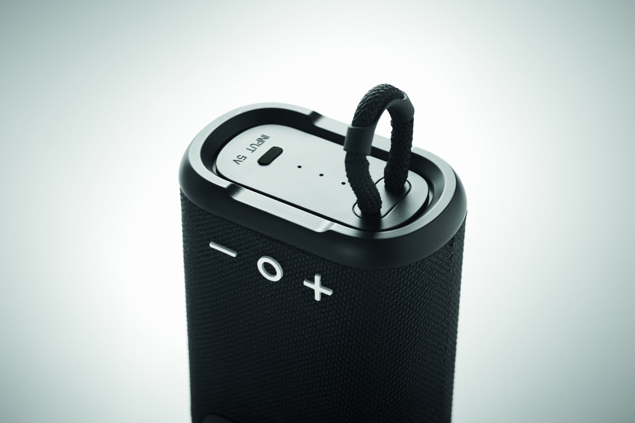 Беспроводная колонка 5.0 из пластика с отделкой из 30% конопли и 70% полиэстера, водонепроницаемость IPX7. 1 перезаряжаемый литий-ионный аккумулятор 1800 мАч. Выходные данные: 5Вт, 4 Ом. Время воспроизведения около 8 ч.