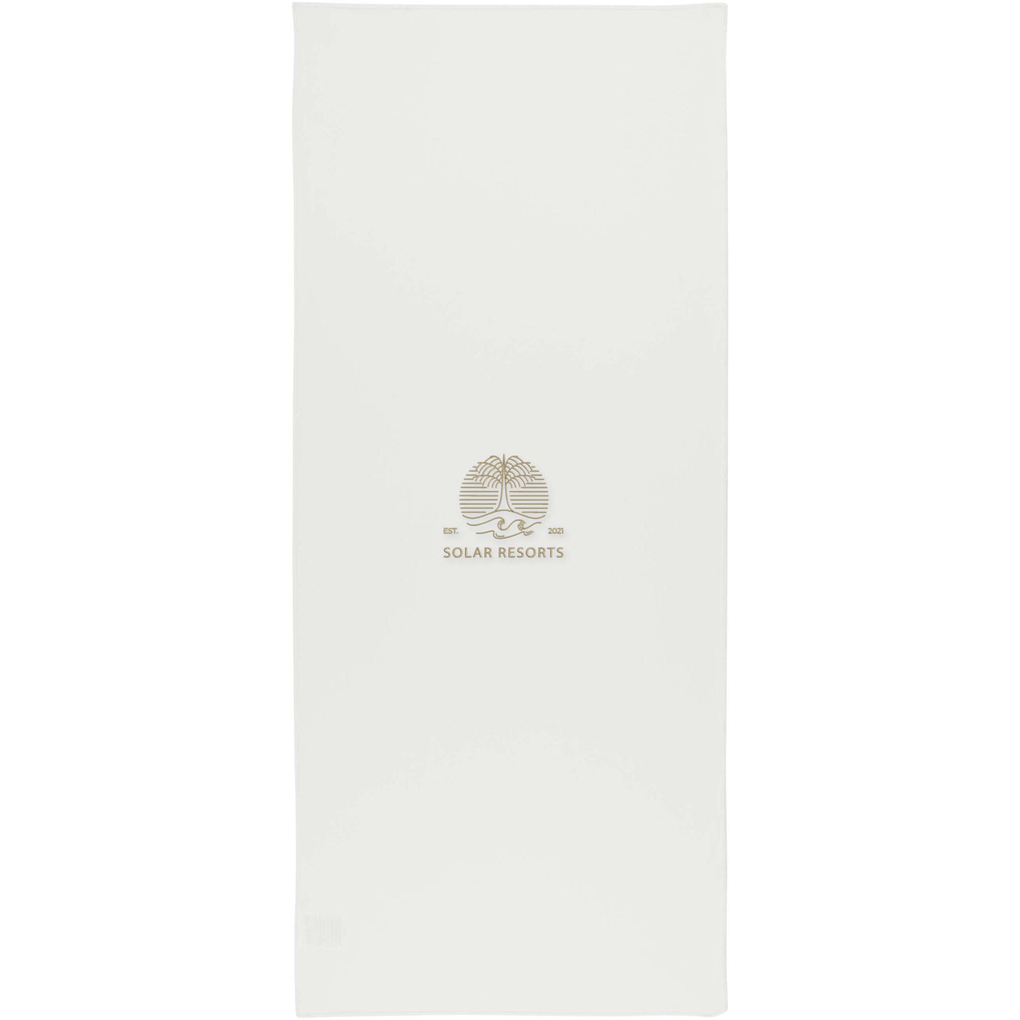 Спортивное полотенце Lucas RPET изготовлено из 100% переработанного полиэстера, имеет мягкую и впитывающую поверхность, идеально подходящую для тренировок или активного отдыха. При весе 140 г/м² он обеспечивает баланс между прочностью, легкостью и комфортом. Полотенце оснащено практичным пластиковым шнуром, который фиксирует как само полотенце, так и сумку, что облегчает его переноску и хранение. Поставляется в нетканом мешочке (11 x 15,5 см), который также изготовлен из 100% переработанного полиэстера. Размер полотенца: 30 x 80 см.